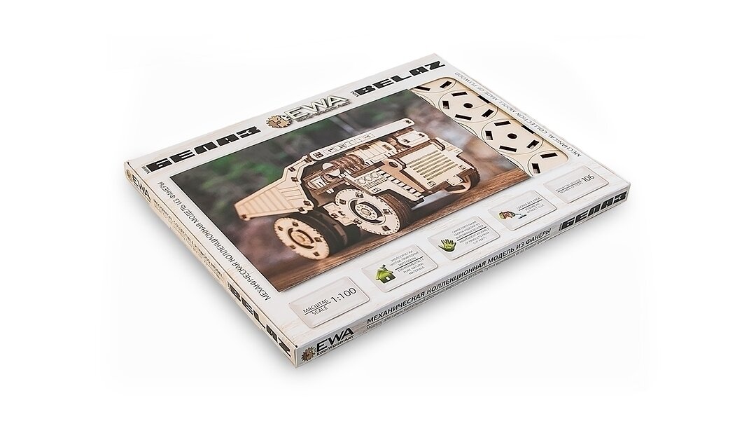 Миниатюрная версия самой популярной модели EWA белаз 75600 с откидывающимся кузовом и открывающимся капотом.