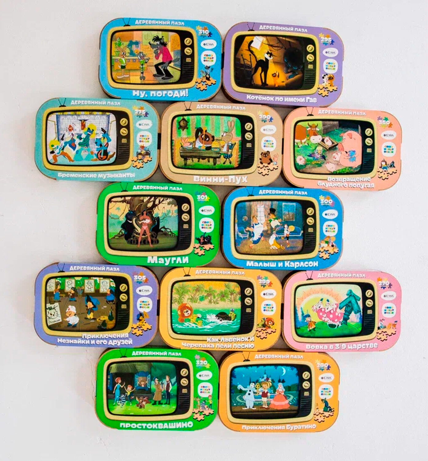 Деревянный пазл СоюзМультФильм превратит сборку головоломки в захватывающее приключение! Устройте праздник для своего воображения и отправляйтесь в удивительный мир, созданный знаменитой мультипликационной студией. Отправьтесь на встречу с любимыми героями и персонажами, чьи приключения оставили свой след в сердцах всех поклонников мультфильмов.