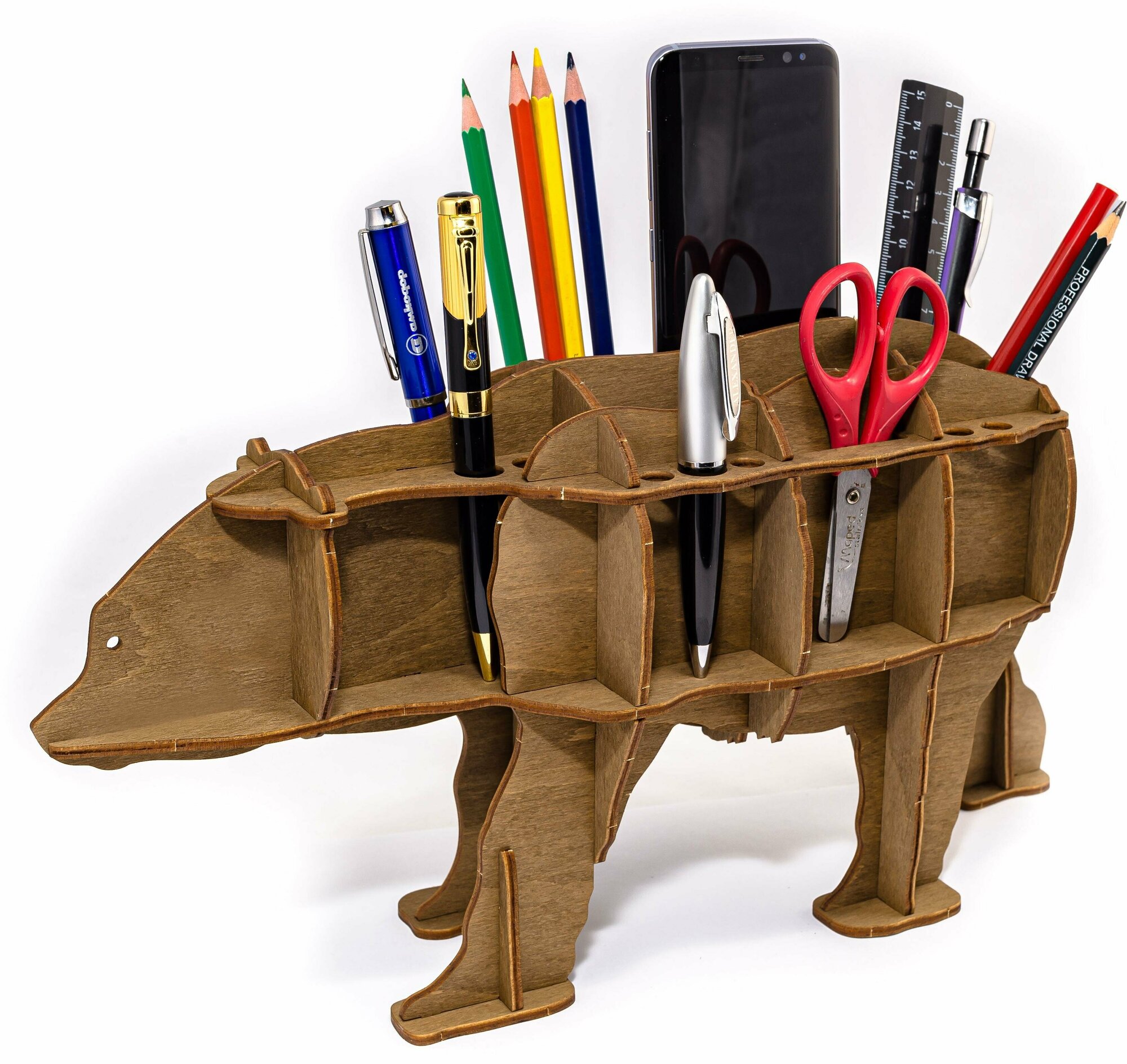 Сборная модель Настольный органайзер Медведь коричневый Eco Wood Art