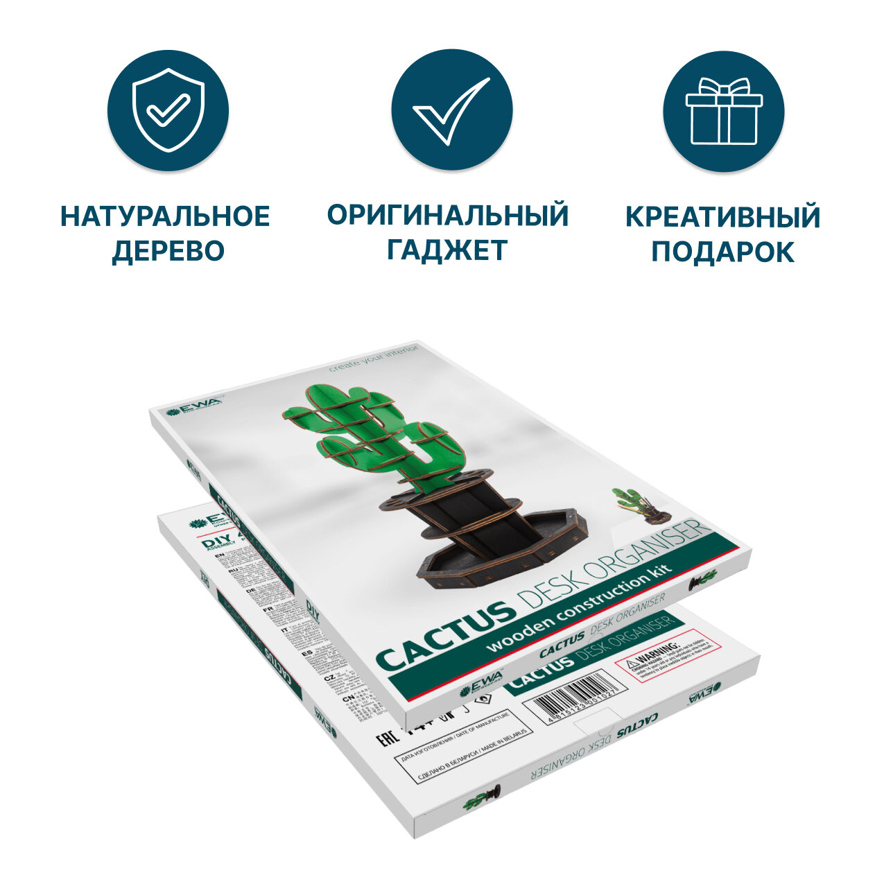 Сервис сравнения цен СкидкаГИД предлагает сравнить цены на товар «Сборная модель Настольный органайзер Кактус зеленый Eco Wood Art»