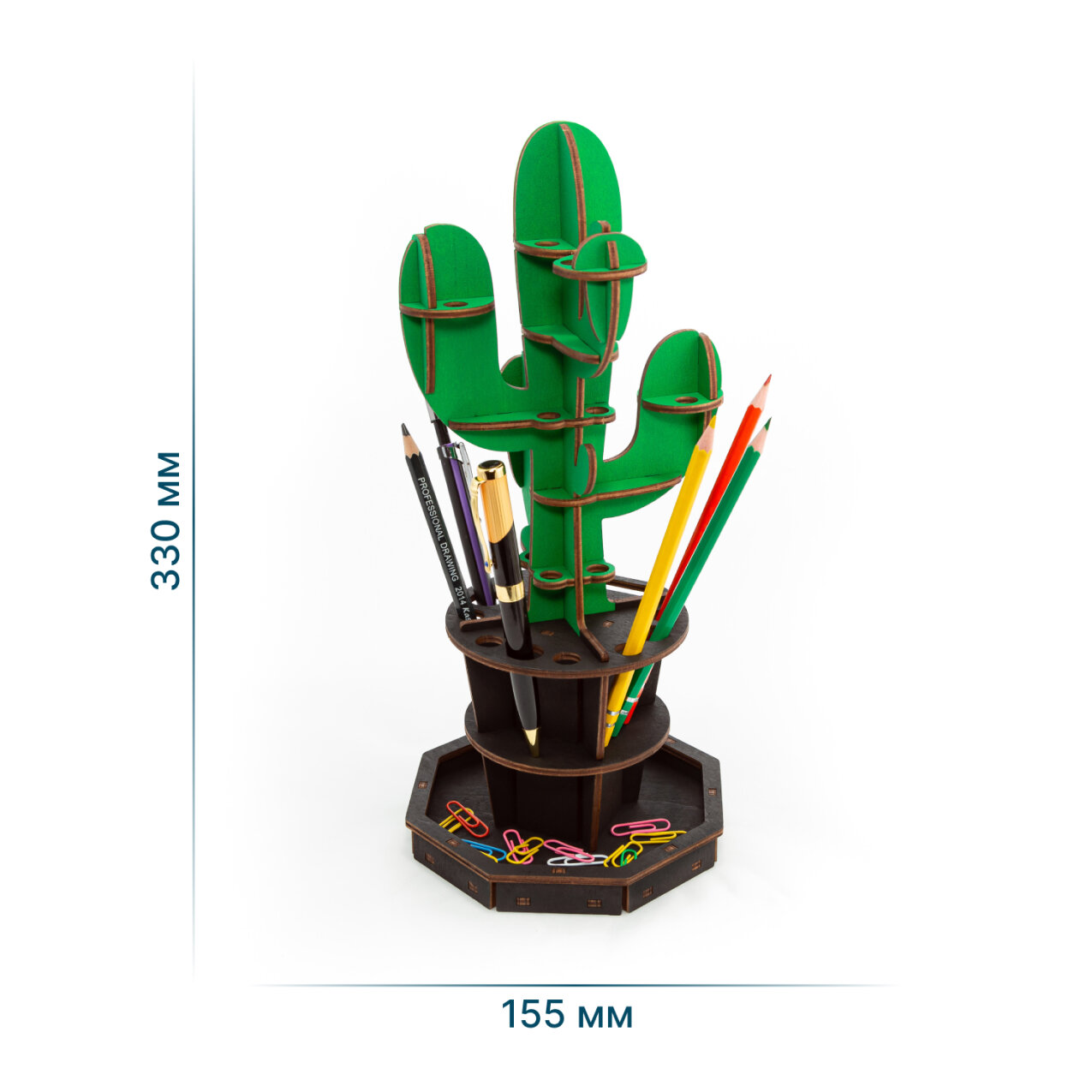 Сборная модель Настольный органайзер Кактус зеленый Eco Wood Art