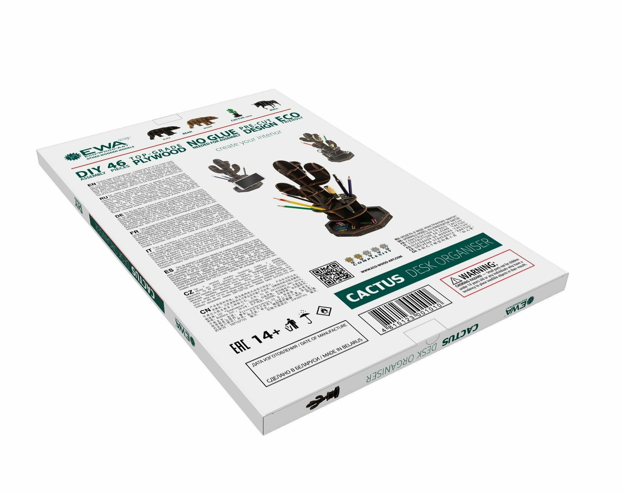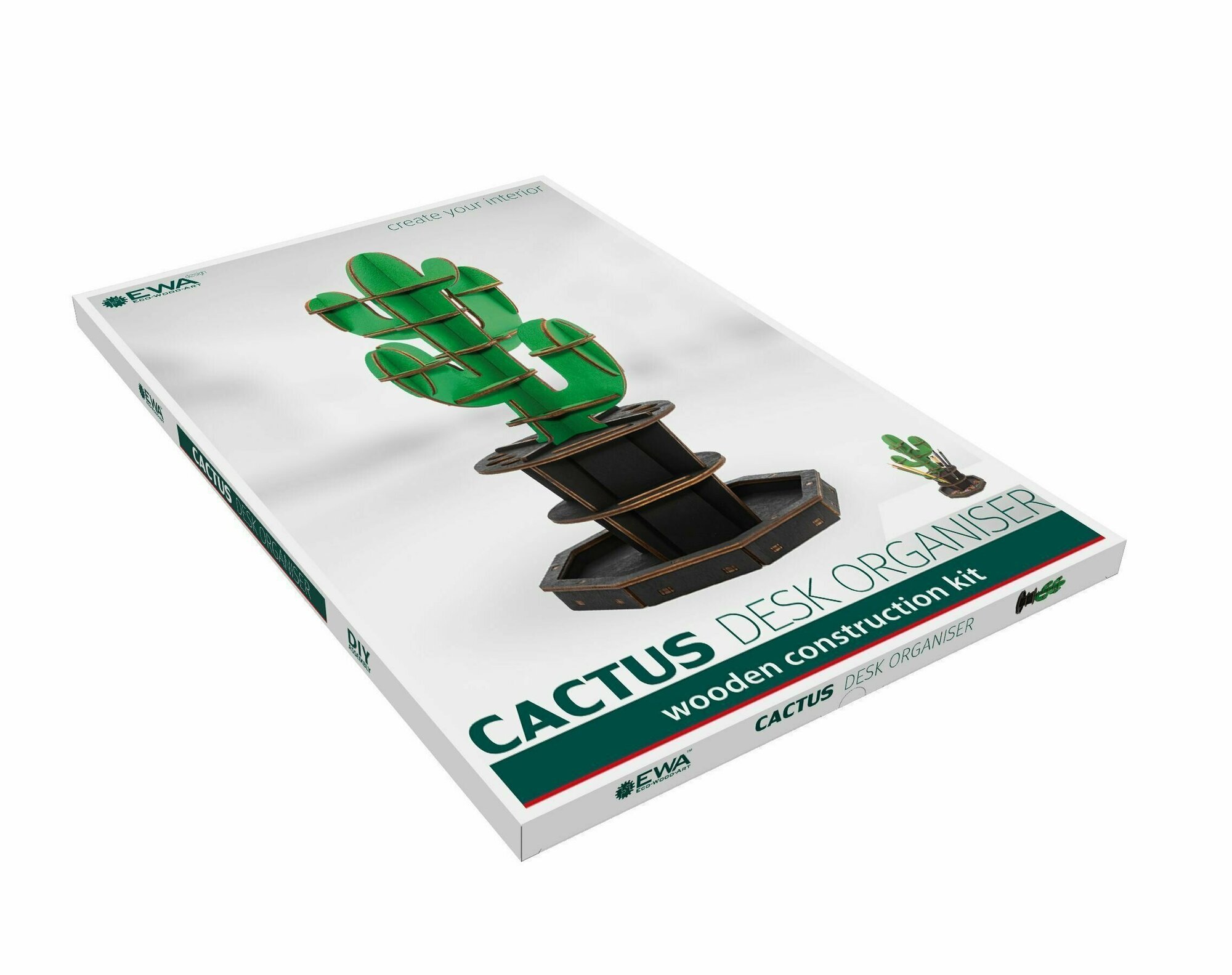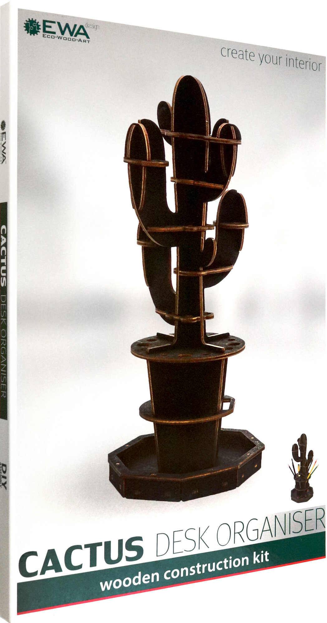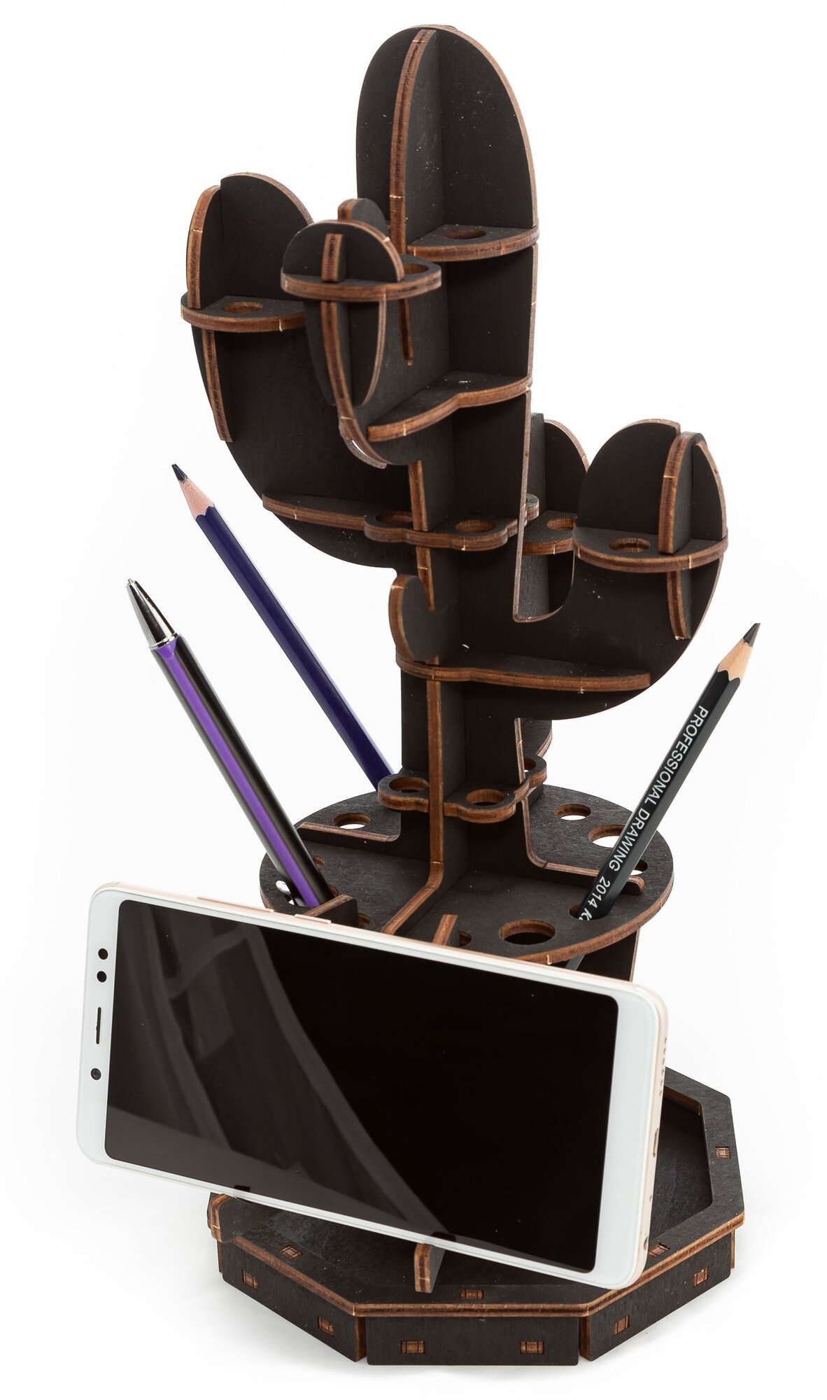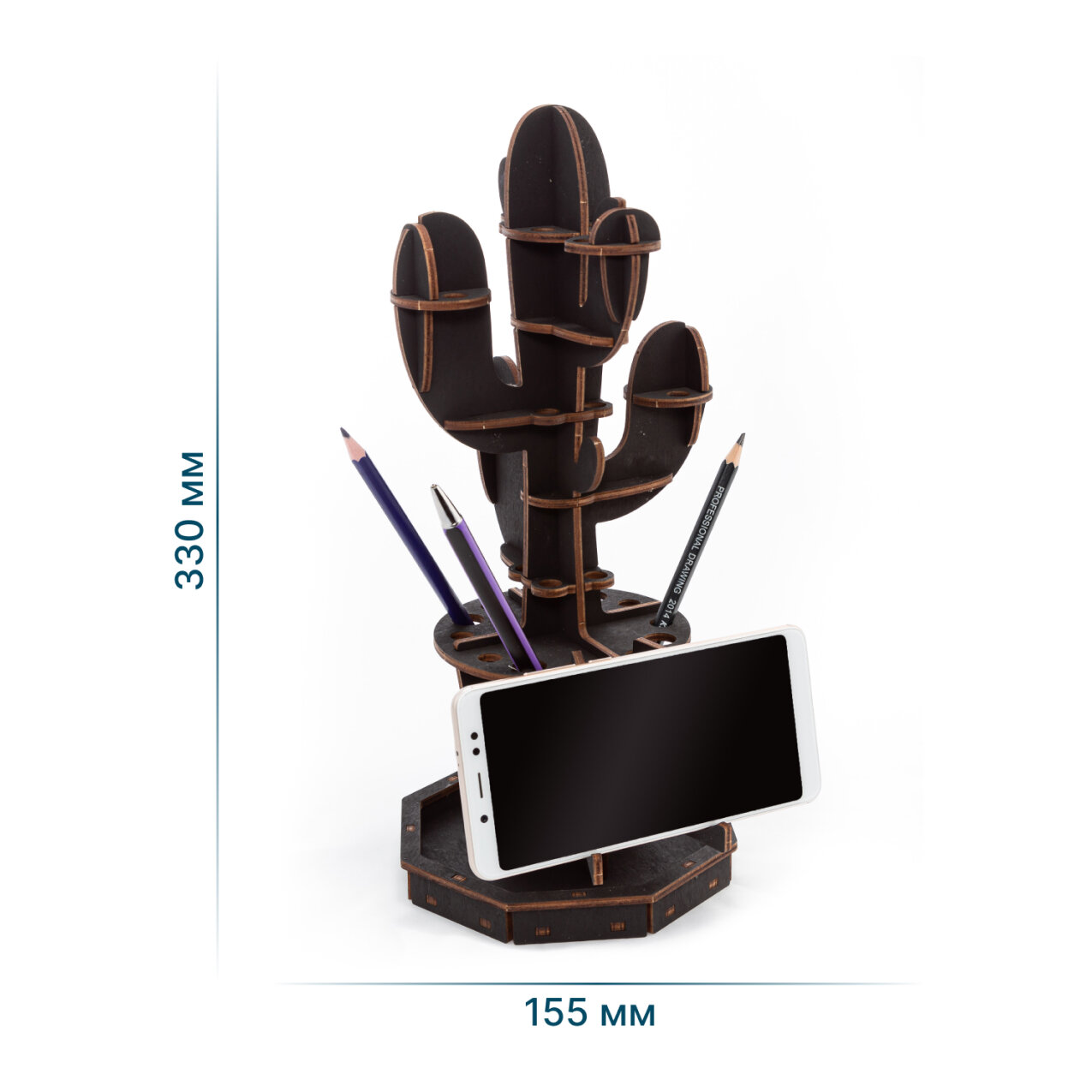 Сборная модель Настольный органайзер Кактус черный Eco Wood Art