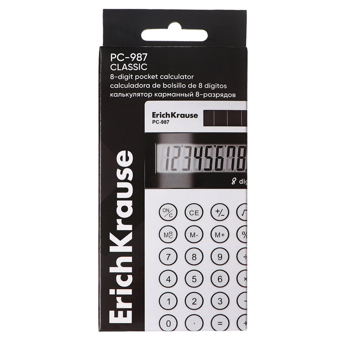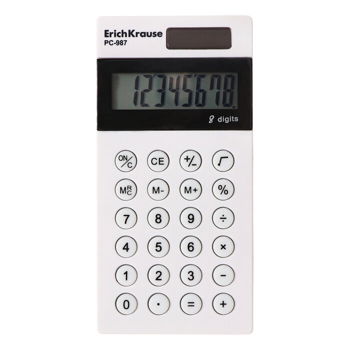 Калькулятор карманный 8-разрядов PC-987 Classic белый Erich Krause