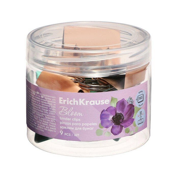 Сервис сравнения цен СкидкаГИД предлагает сравнить цены на товар «Зажимы для бумаг Pastel Bloom 32 мм 9 штук ассорти Erich Krause»