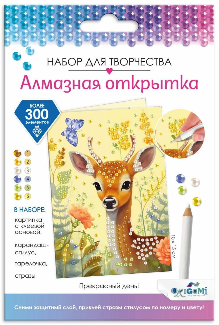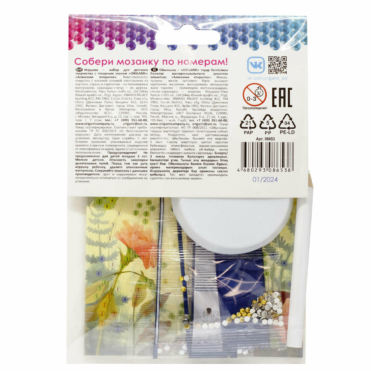 Комплектность: открытка с клеевой основой, карандаш-стилус, стразы, тарелочка.