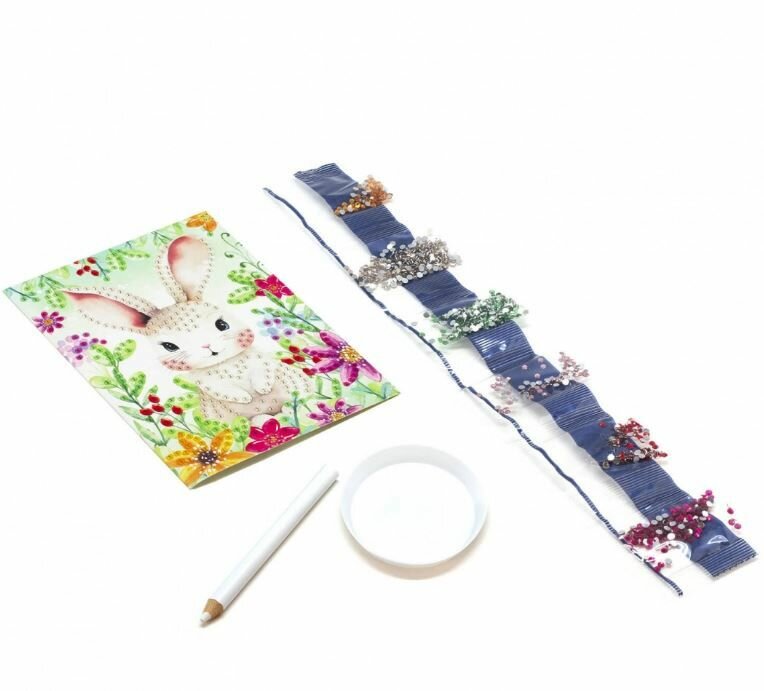 Комплектность: открытка с клеевой основой, карандаш-стилус, стразы, тарелочка.
