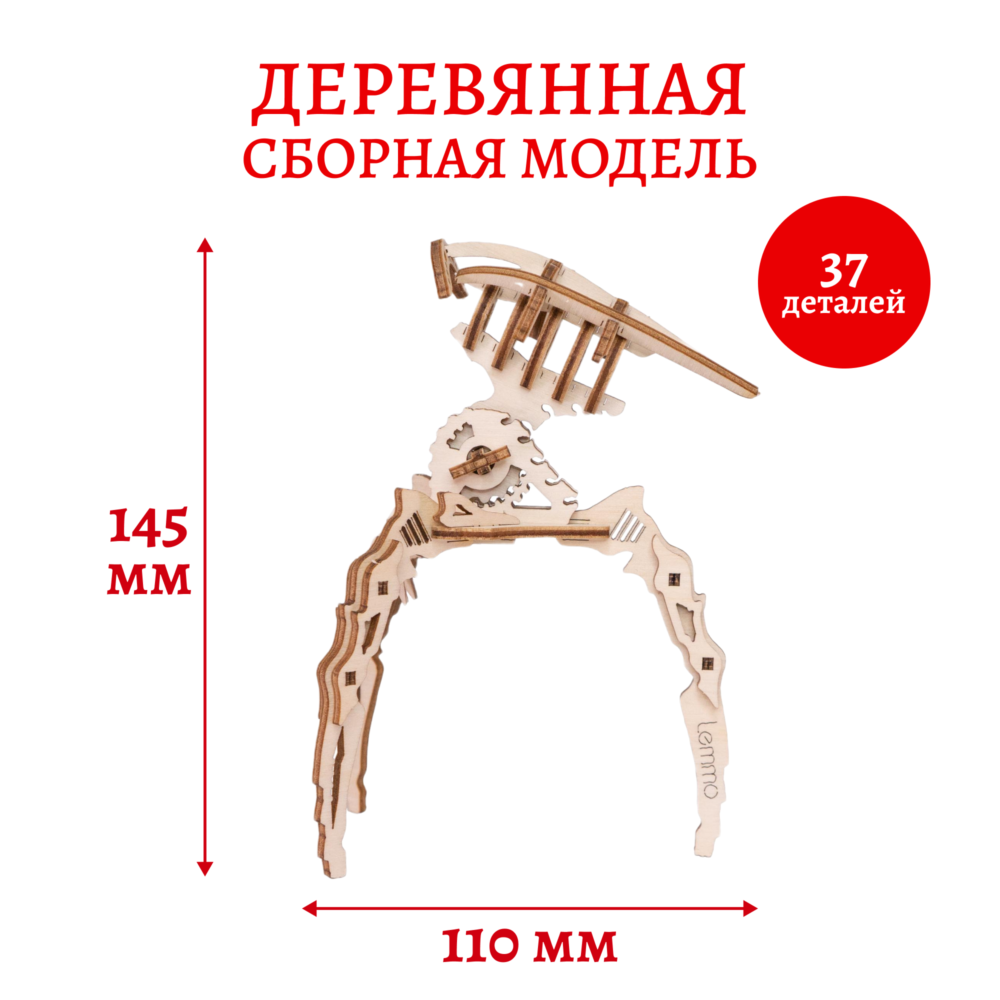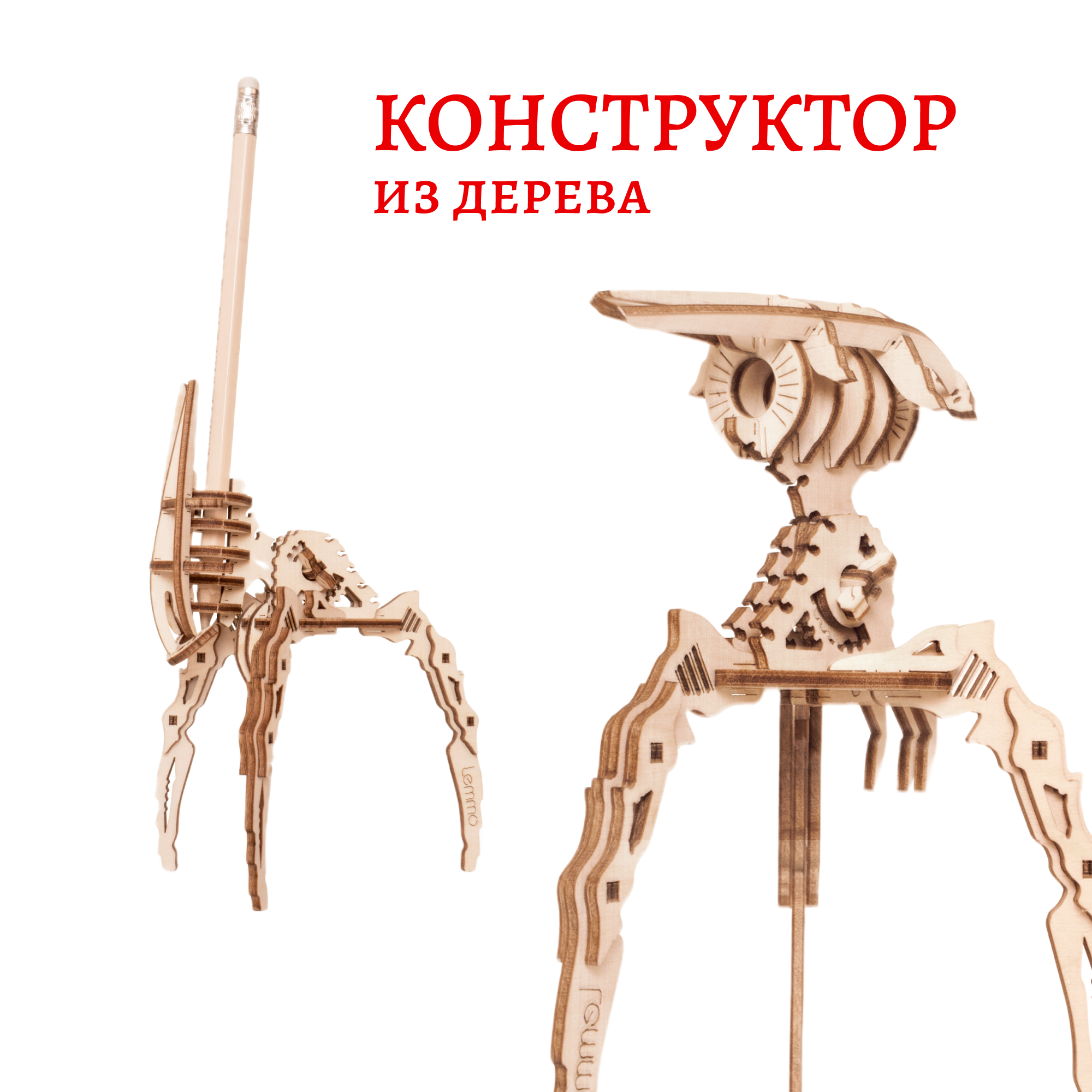 Деревянный конструктор Lemmo "Малыш Захватчик" - младший брат популярной сборной модели светильника "Захватчик Миров". Конструктор Робот - лучший подарок для мальчика, девочки и взрослых, любителей фильма "Война миров". Захватит в плен любую планету и ваши сердца! Деревянный конструктор выполнен в точности как в фильме, вы можете собирать его с детьми и пересматривать сюжет. У собранной модели двигается и фиксируется "голова". Деревянную модель можно использовать как подставку для пишущих предметов и, при желании, раскрасить акриловыми красками.