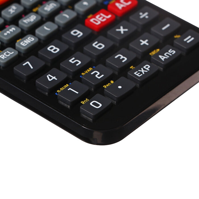 Научный калькулятор непрограммируемый в пластиковом корпусе с 10-разрядным ЖК - дисплеем. Большой набор вычислительных функций позволяет совершать основные математические операции, извлекать квадратный корень, рассчитывать логарифмы, совершать тригонометрические операции и расчёты с инженерными обозначениями, осуществлять статистические расчёты, производить расчёты с градусами, минутами, секундами. Для экономии энергии предусмотрены два источника питания: солнечная и алкалиновая батареи, а также функция автоматического выключения.