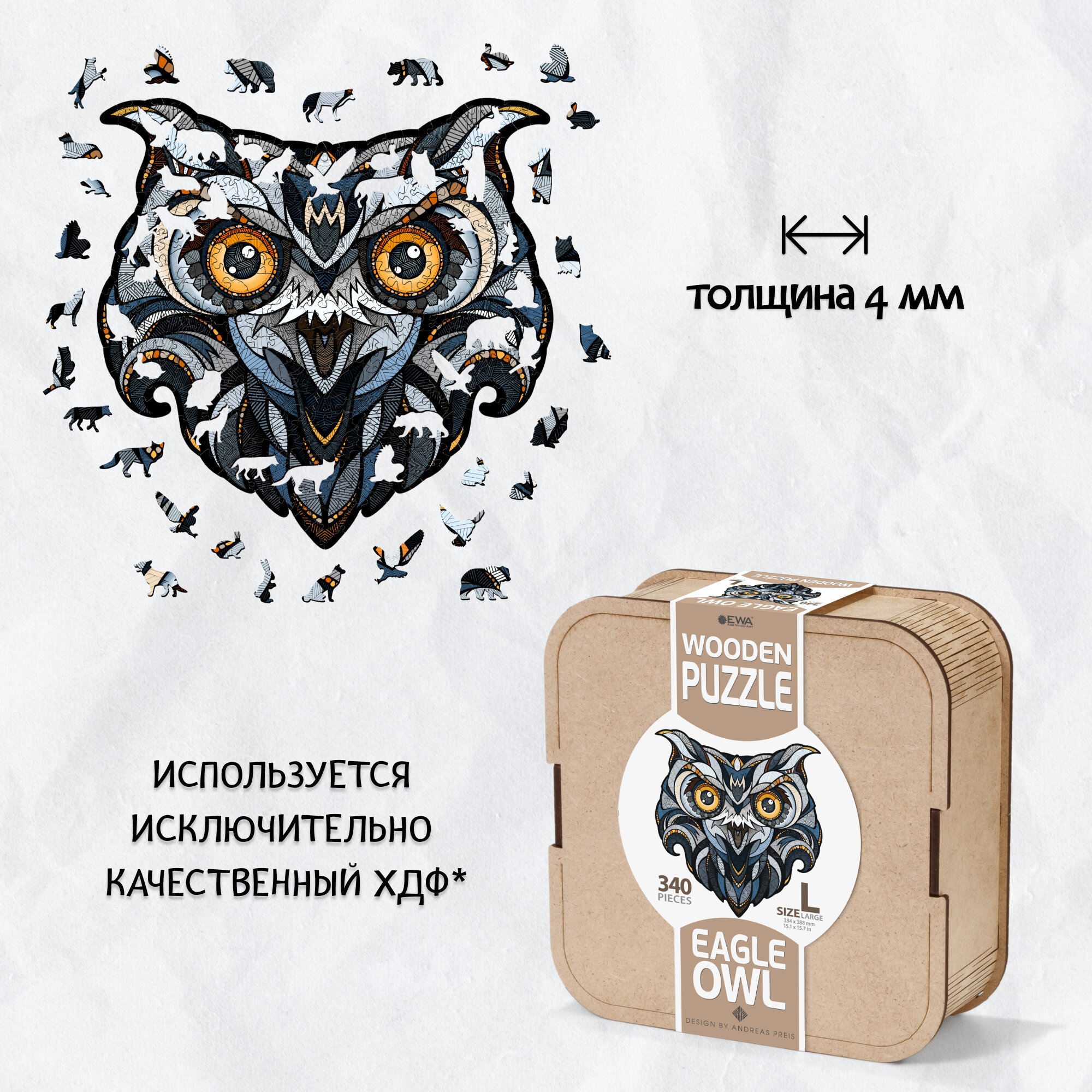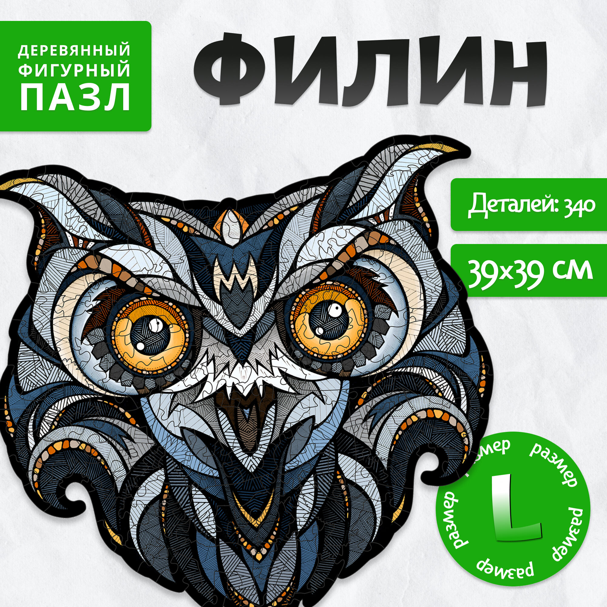 Деревянный пазл "Филин" большого размера 39x39 см - это захватывающий способ провести время с друзьями и семьей.