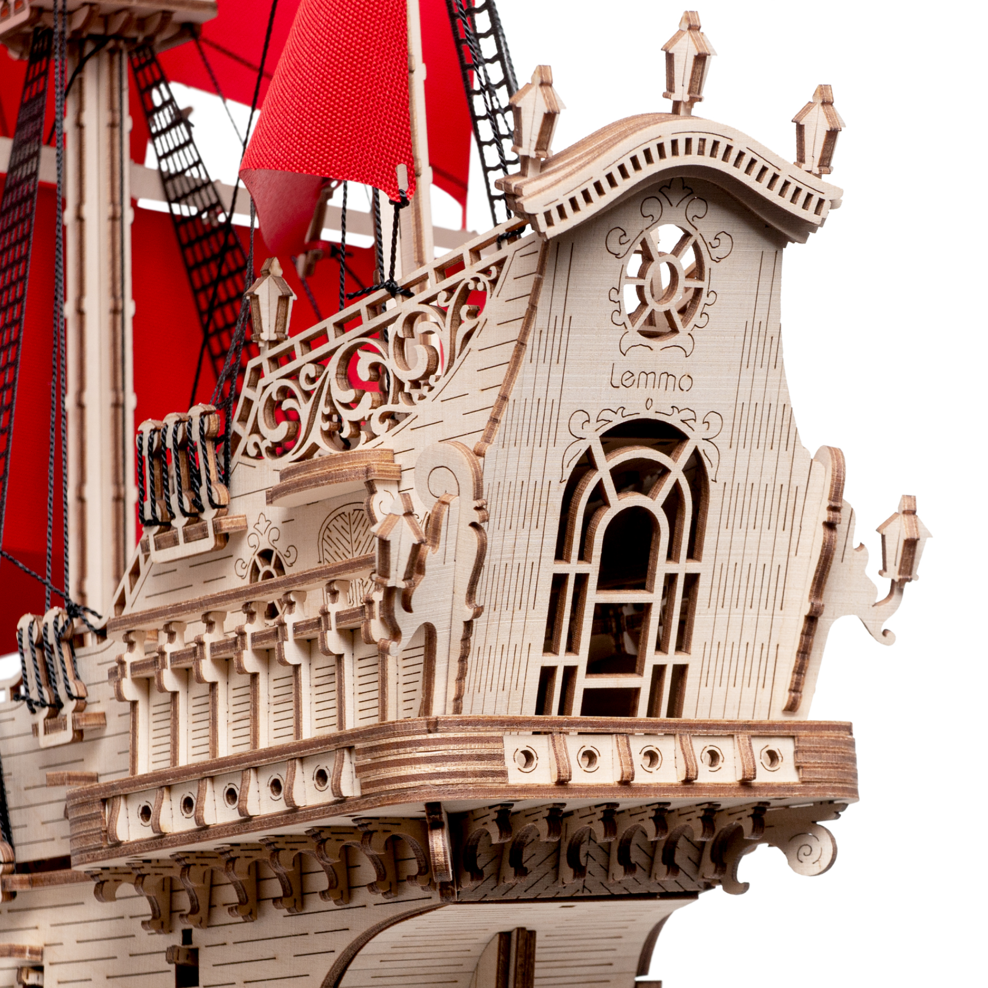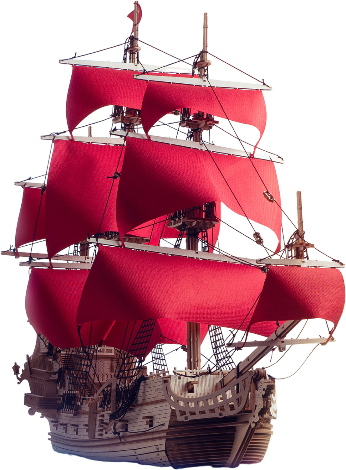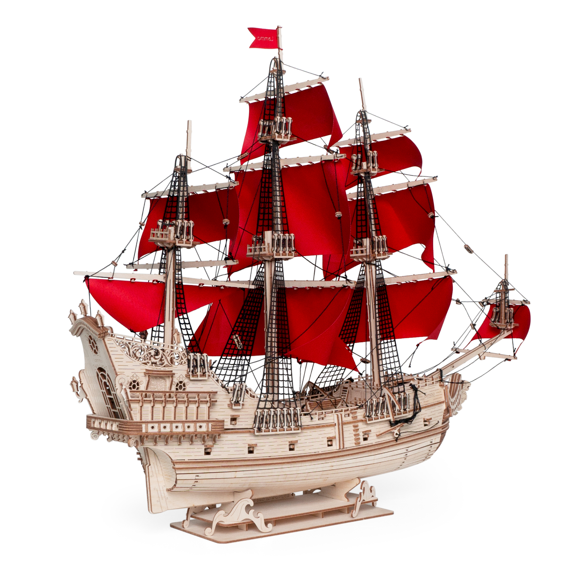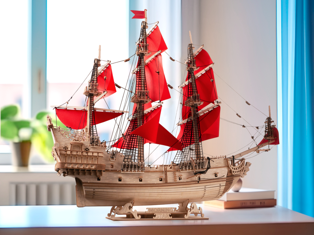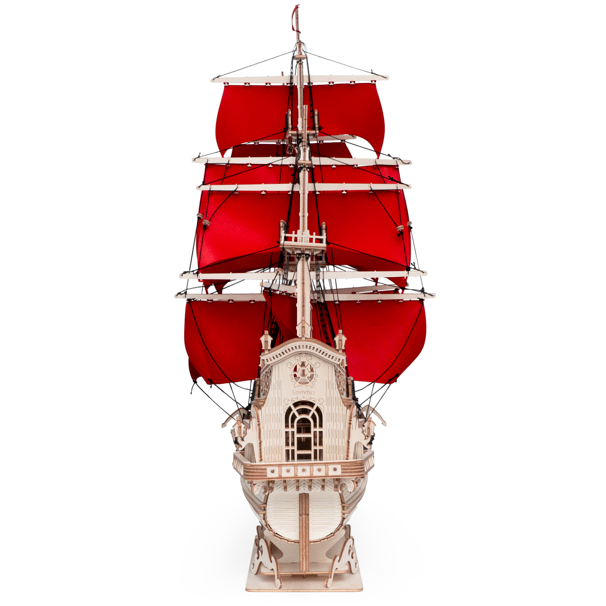 Сборная модель из дерева Корабль Утренняя Звезда красные паруса Lemmo