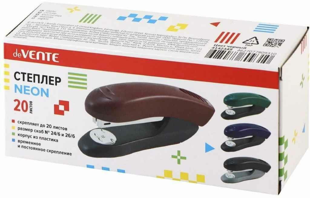 Степлер Stripe №24/6 26/6 20 листов черный deVENTE
