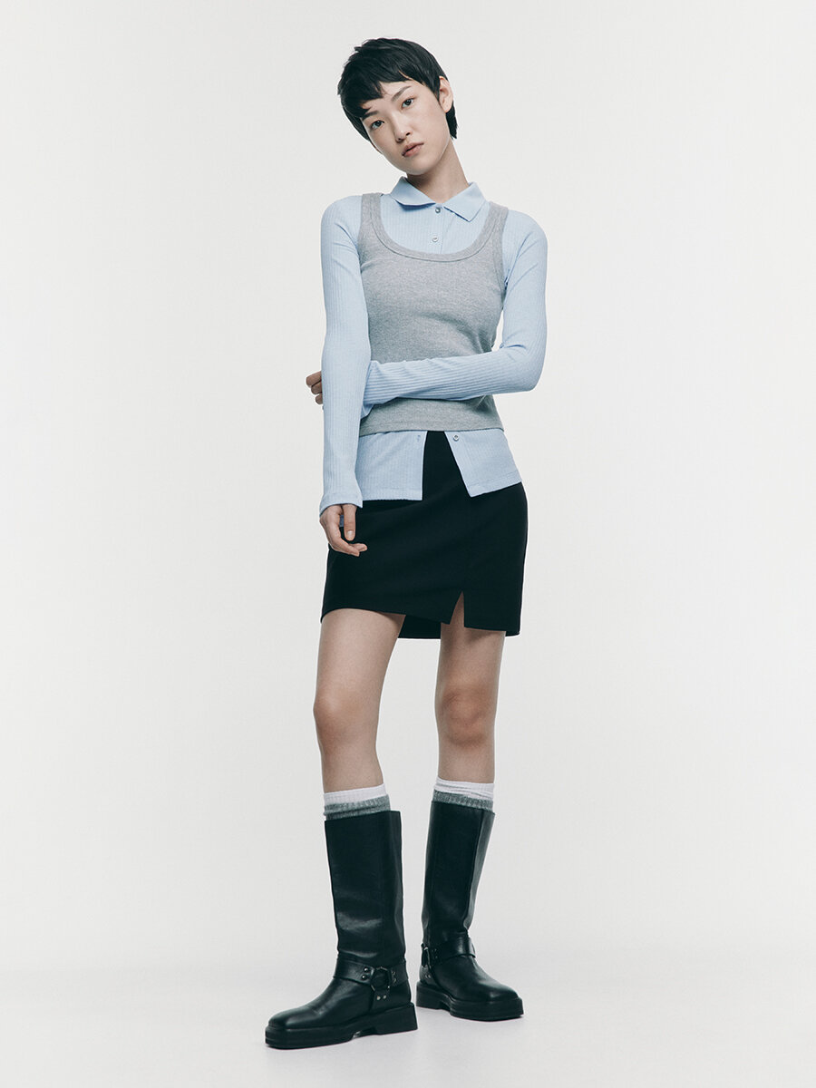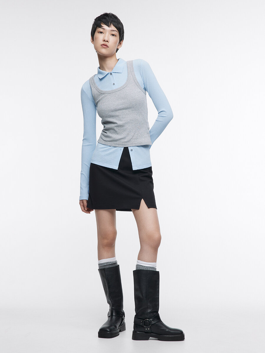 - Универсальная костюмная юбка с разрезом на любой сезон: сочетай ее со своими любимыми базовыми блузками, водолазками или пиджаками для более строгих образов или с яркими джемперами, футболками или топами для расслабленных повседневных луков