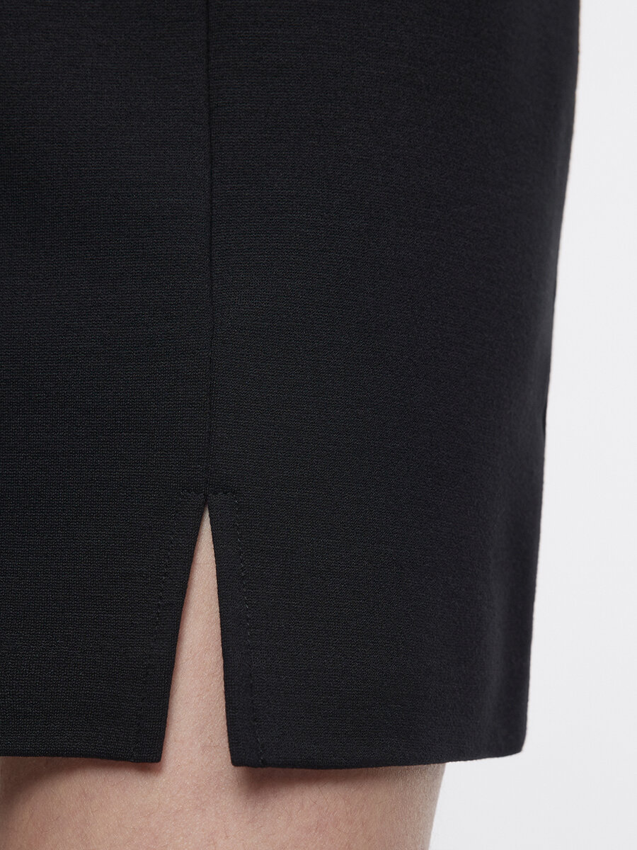 - Однотонная черная юбка с разрезом