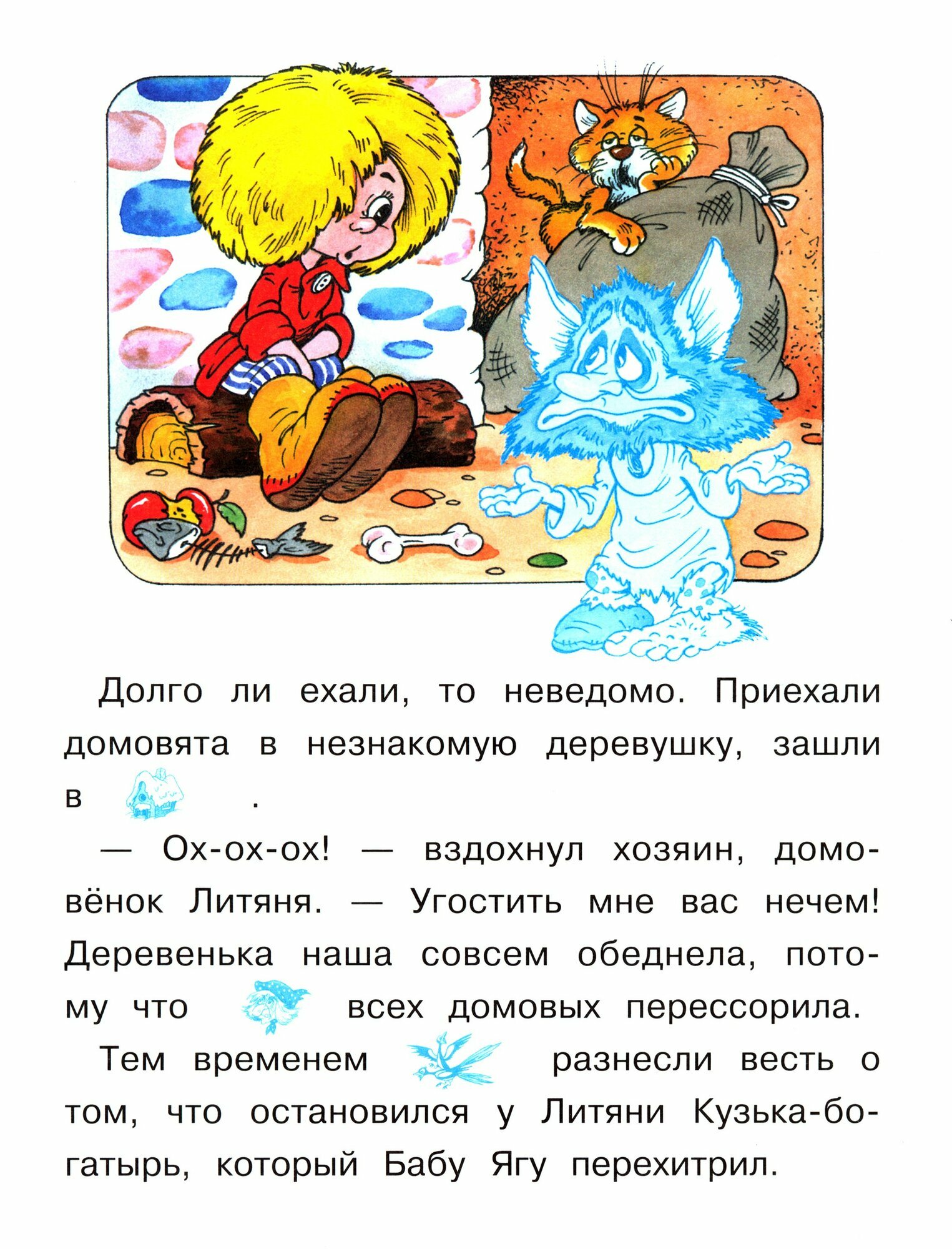 Однажды домовенок Кузька отправился погостить в свою родную деревеньку. Да по пути с ним приключения разные случились. Но не растерялся Кузька: и сам выпутался из всех передряг, и домовят выручил!