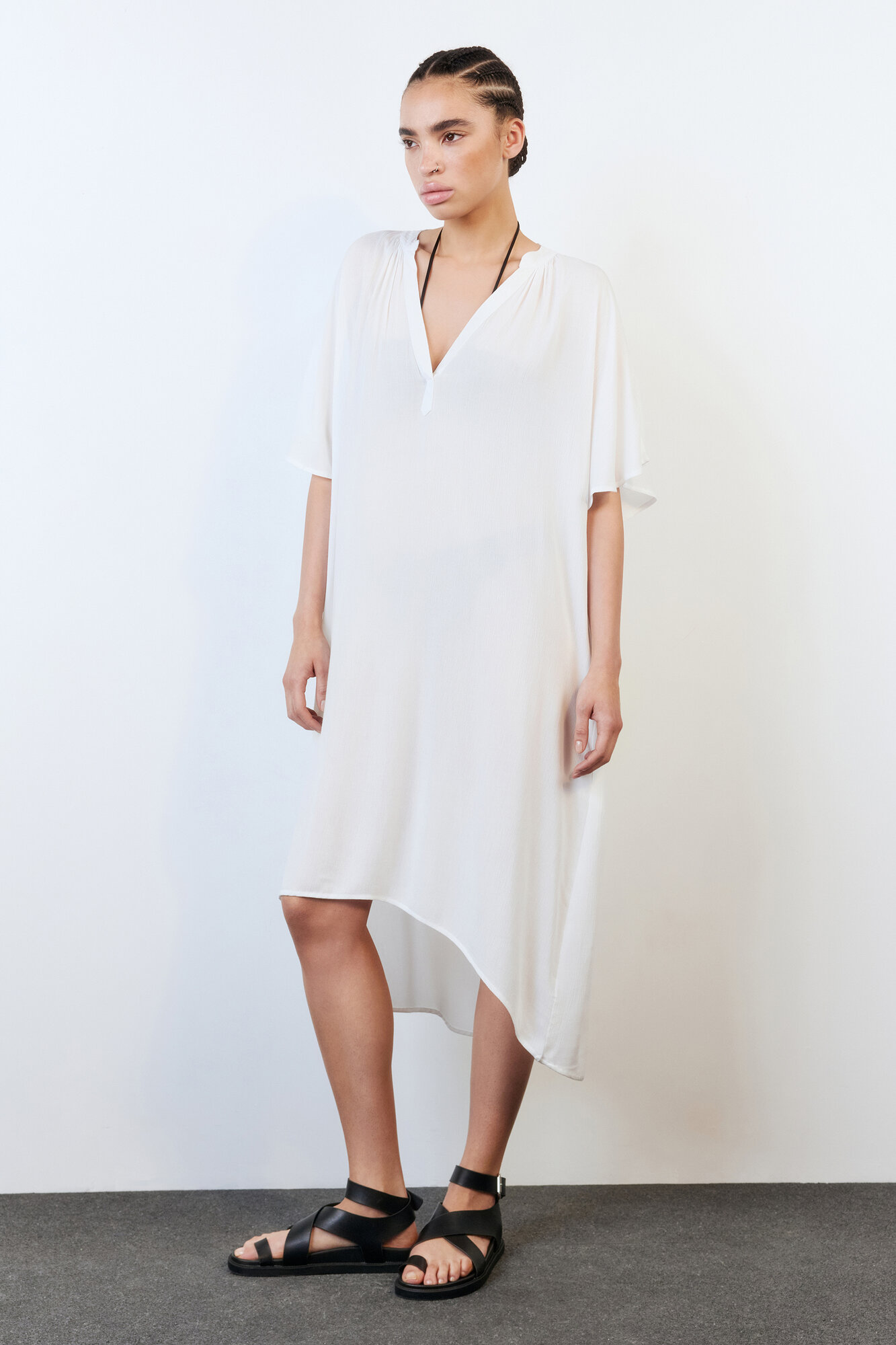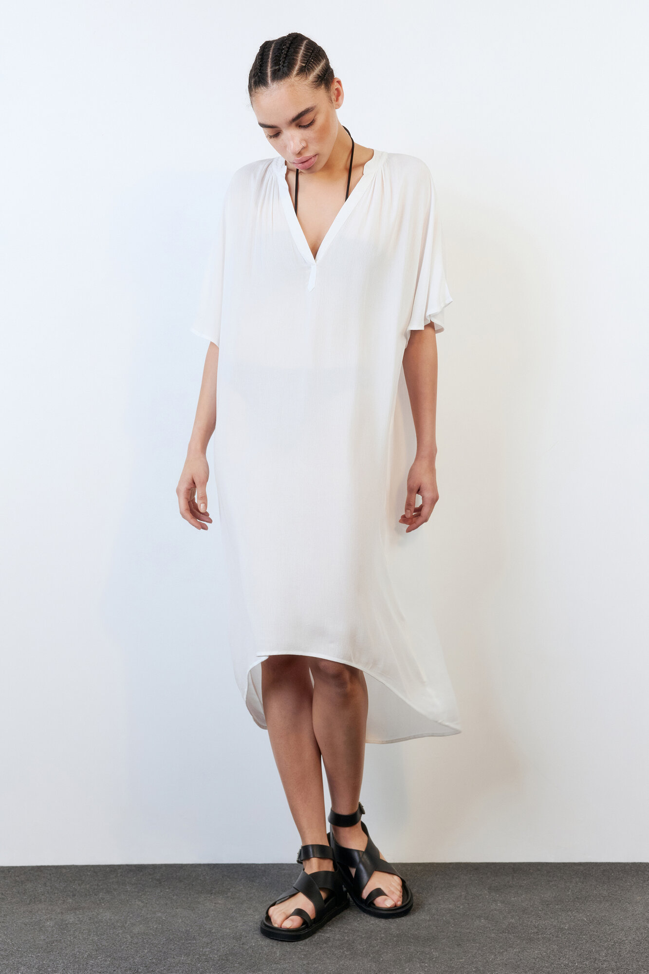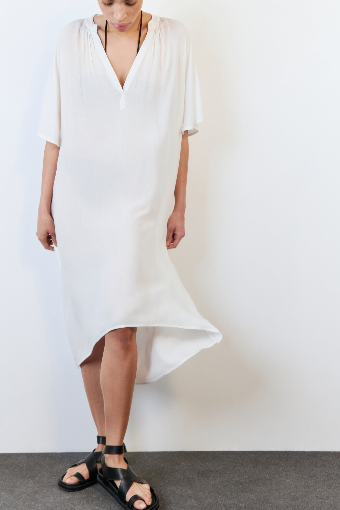 - Платье-туника пляжное вискозное с вырезом. Женское пляжное платье миди свободного А-силуэта из мягкой, легкой, дышащей 100% вискозной ткани