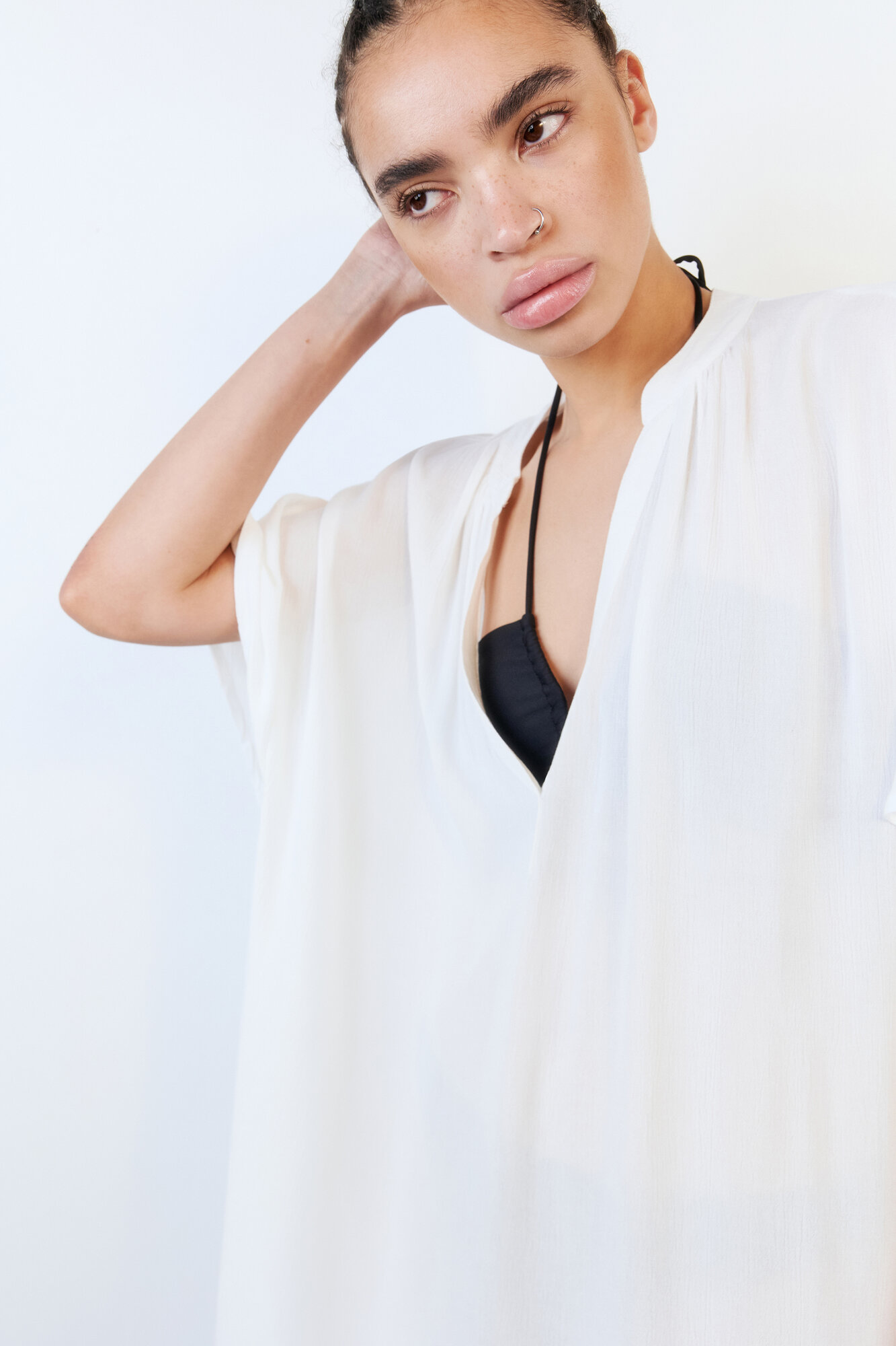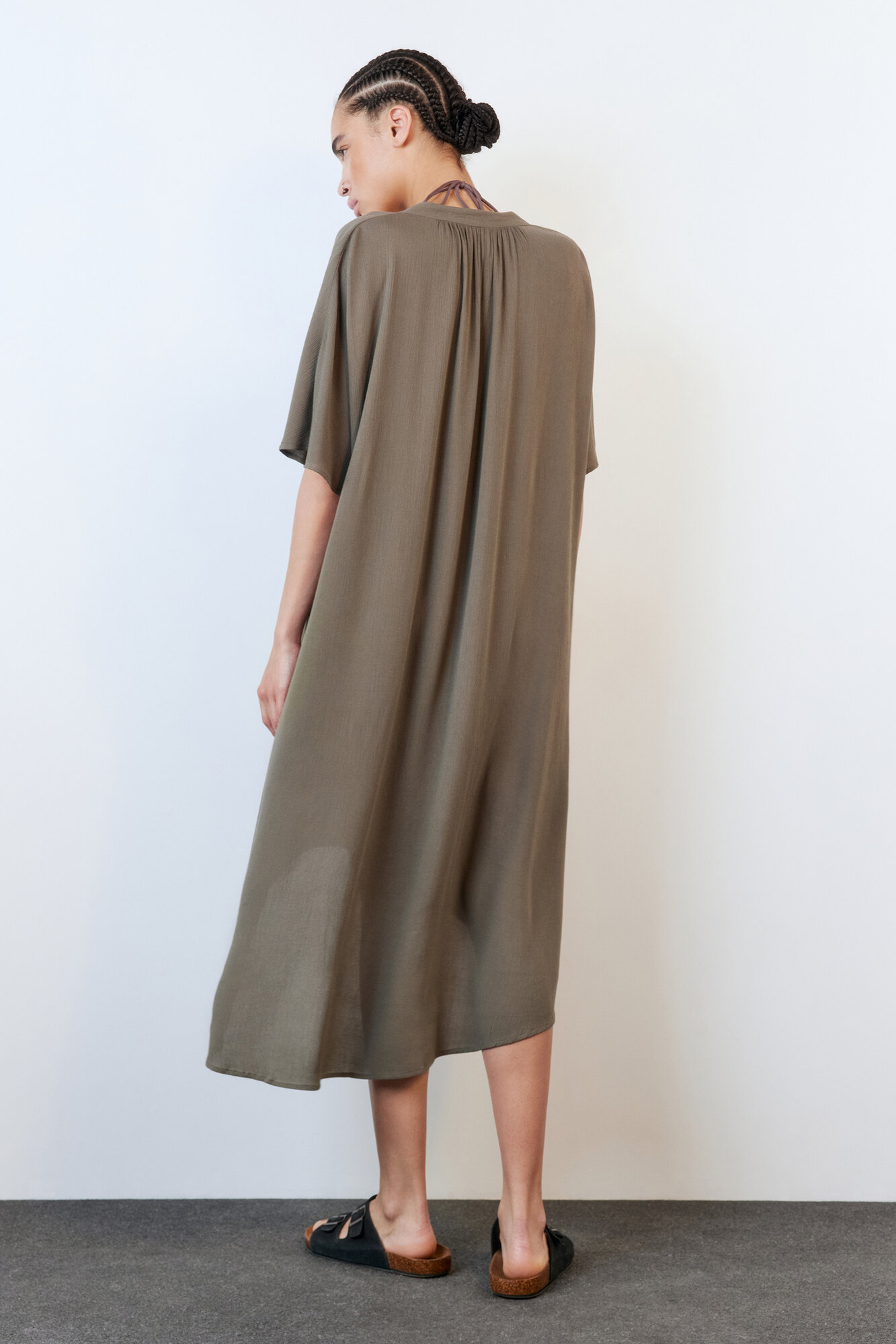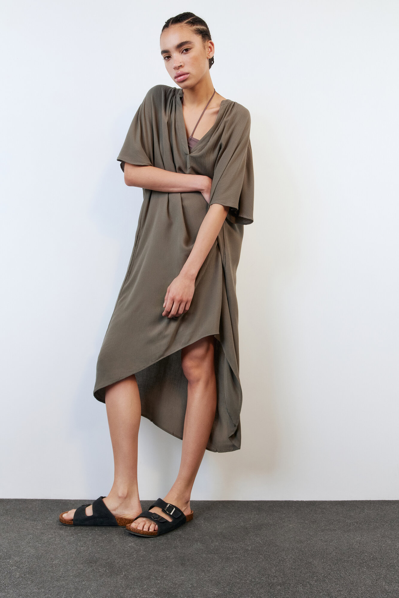- Однотонная белая / хаки пляжная туника для расслабленных образов в отпуске