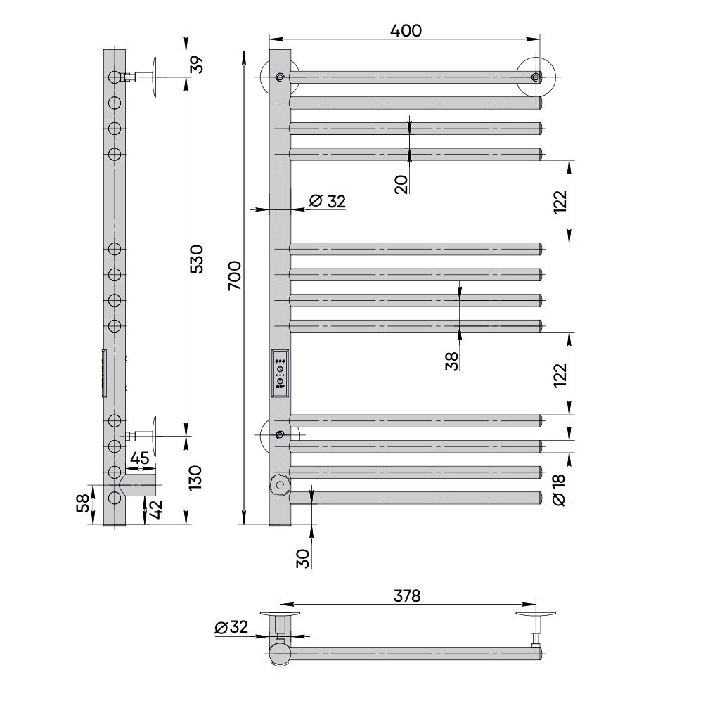 Полотенцесушитель электрический Indigo Family 70x40 LFME70-40L серебристый (размер: 70x40 см)