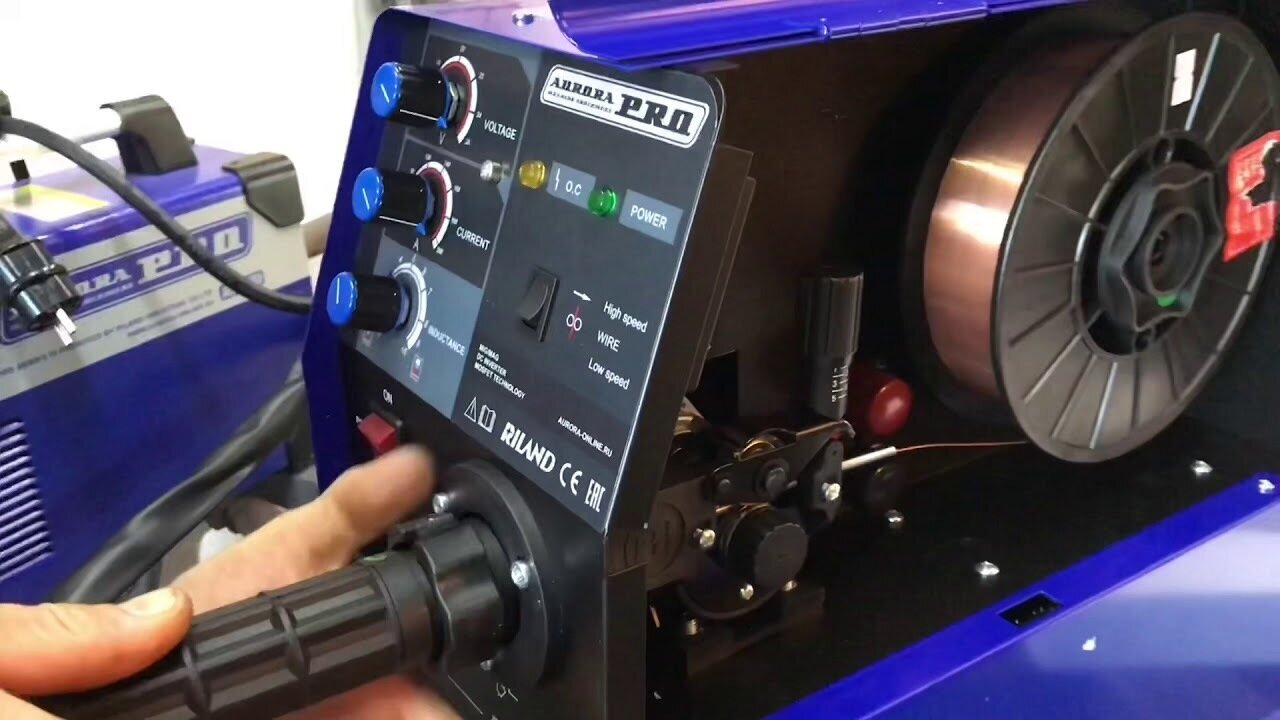 Инверторный сварочный полуавтомат Aurora PRO 10041 приспособление для сварки MIG/MAG. Агрегат широко используется как в производственной, так и в бытовой сфере. Регуляторы индуктивности, сварочного тока, а также сварочного напряжения дают возможность получить шов высокого качества. Модель имеет ручку, благодаря которой инвертор легко и удобно перемещать по рабочей площадке. Возможна установка аппарата на тележку Aurora PRO для легкой транспортировки (опция). Толщина изделия, с которой позволяет работать прибор - более 0.6 мм. Скорость подачи проволоки составляет 2-15 м/мин.Преимущества Розетка 36В для подключения подогрева редуктора Настройка скорости протяжки проволоки: быстрая/медленная Высокая стабильность горения дуги, снижение образования брызг Работа при пониженном напряжении питающей сети - до 140В вольт Усовершенствованная технология инвертора MOSFET на базе транзисторов TOSHIBA Регулировка индуктивности для настройки желаемой жесткости дуги, глубины провара и формы валика Диаметр проволочной бобины - 200 мм