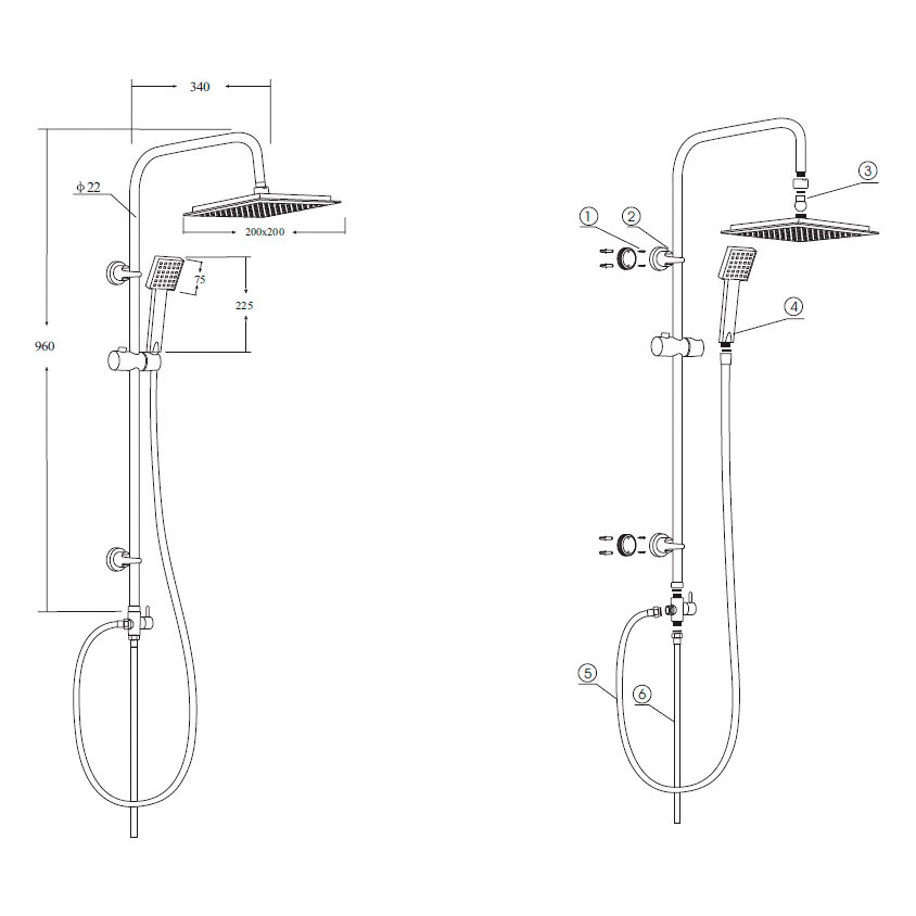 | Комплект поставки | ручной душ, верхний душ, штанга, душевой шланг, крепление ручного душа |
