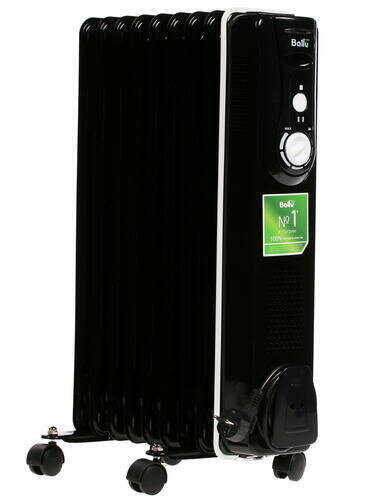 Современный масляный радиатор Ballu китайского производства оптимален для обогрева помещений, площадь которых до 20 м². В процессе функционирования практически не издает шумов, не сушит воздух. Обеспечивает равномерный и достаточно быстрый обогрев. Устройство, имеющее необычный черный матовый корпус, состоит из 9 секций. Специальное покрытие надежно защищает прибор от образования коррозии. Масляный радиатор дополнен специальными колесиками для легкого перемещения.