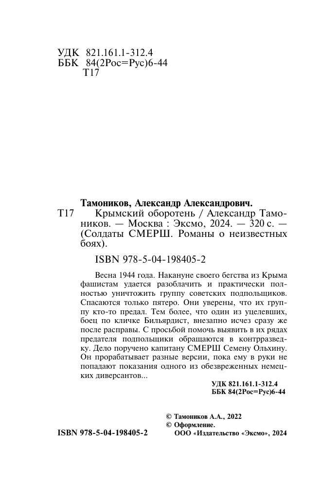 Книга: Крымский оборотень (Александр Александрович Тамоников); Эксмо, 2024