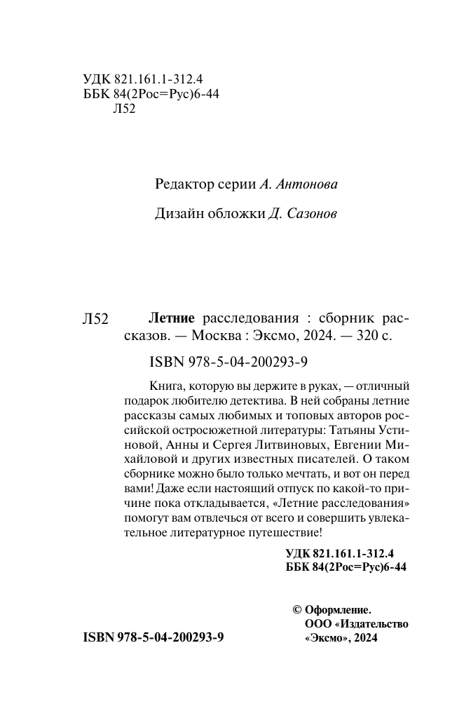 Книга: Летние расследования (Баскова Ольга, Устинова Татьяна Витальевна, Логунова Елена Ивановна, Михайлова Евгения, Нури Альбина, Антонова Наталия Николаевна); ООО "Издательство "Эксмо", 2024