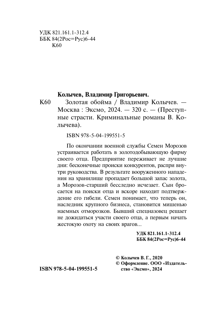 Книга: Золотая обойма (Владимир Григорьевич Колычев); Эксмо, 2024