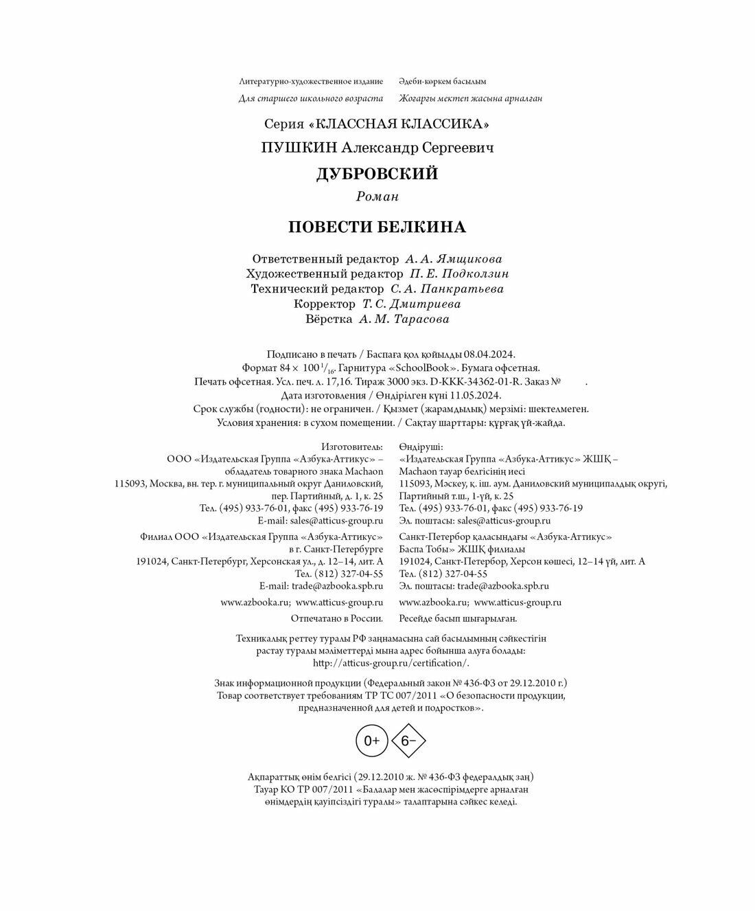 Дубровский. Повести Белкина (Пушкин Александр Сергеевич); Махаон Издательство, 2024