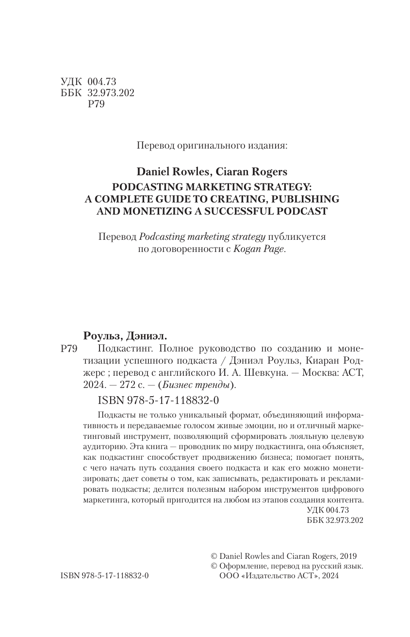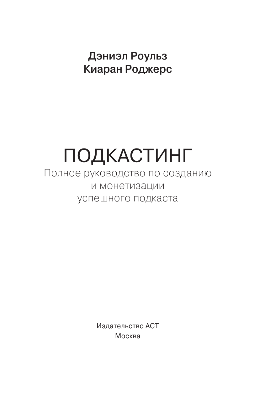 Подкастинг. Полное руководство по созданию и монетизации успешного подкаста (Роульз Дэниэл, Роджерс Киаран); ООО "Издательство Астрель", 2024