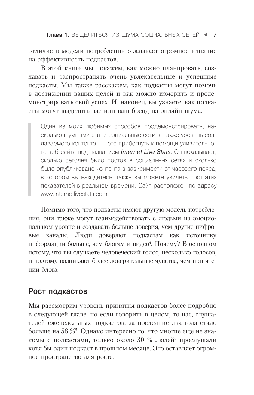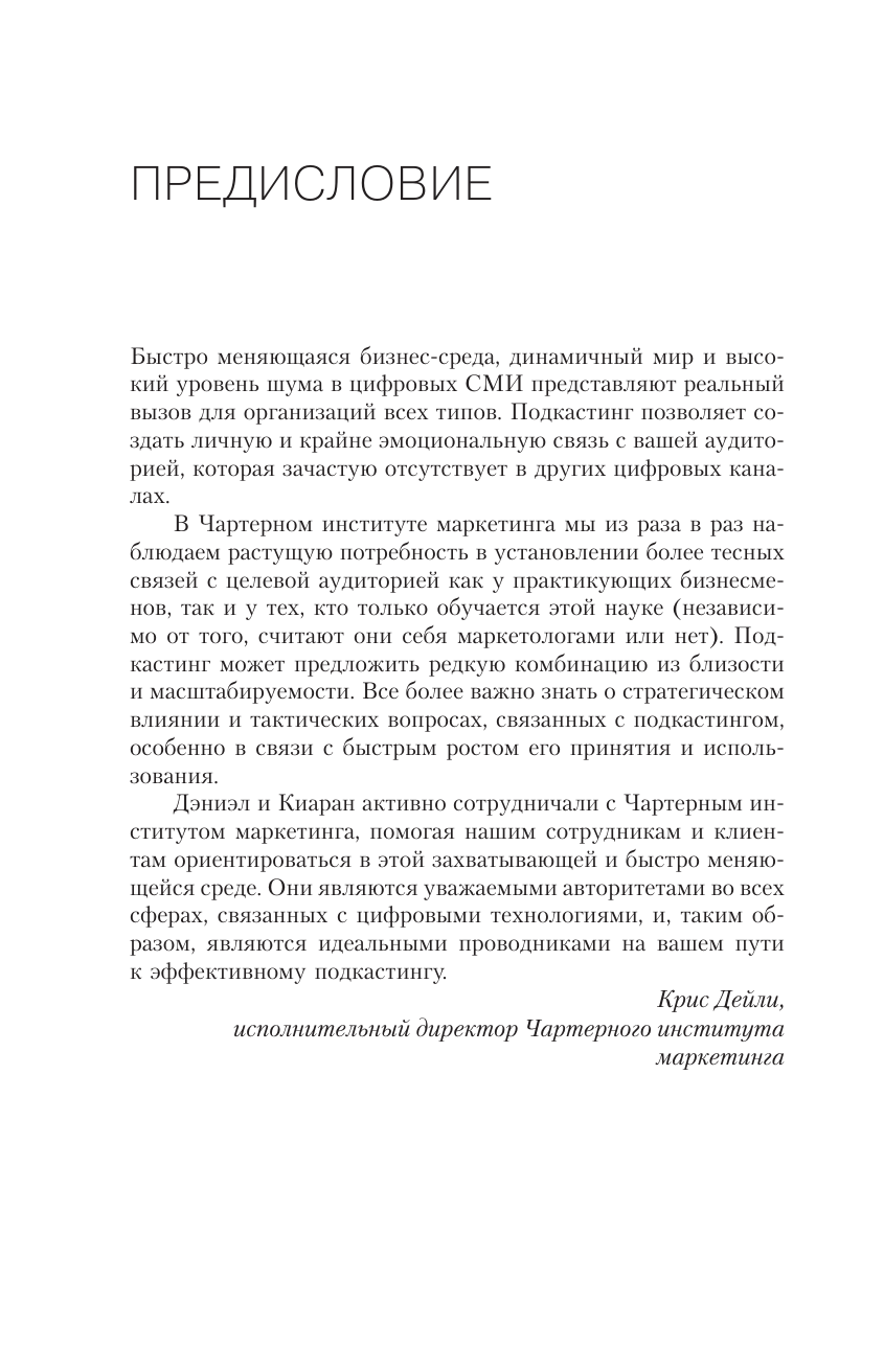 Подкасты не только уникальный формат, объединяющий информативность и передаваемые голосом живые эмоции, но и отличный маркетинговый инструмент, позволяющий сформировать лояльную целевую аудиторию. Эта книга — проводник по миру подкастинга, она объясняет, как подкастинг способствует продвижению бизнеса;