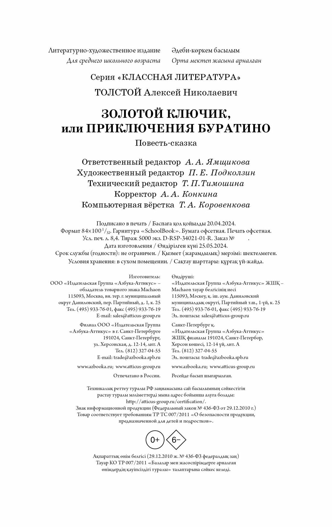 Золотой ключик или Приключения Буратино (Толстой Алексей Николаевич); Махаон Издательство, 2024