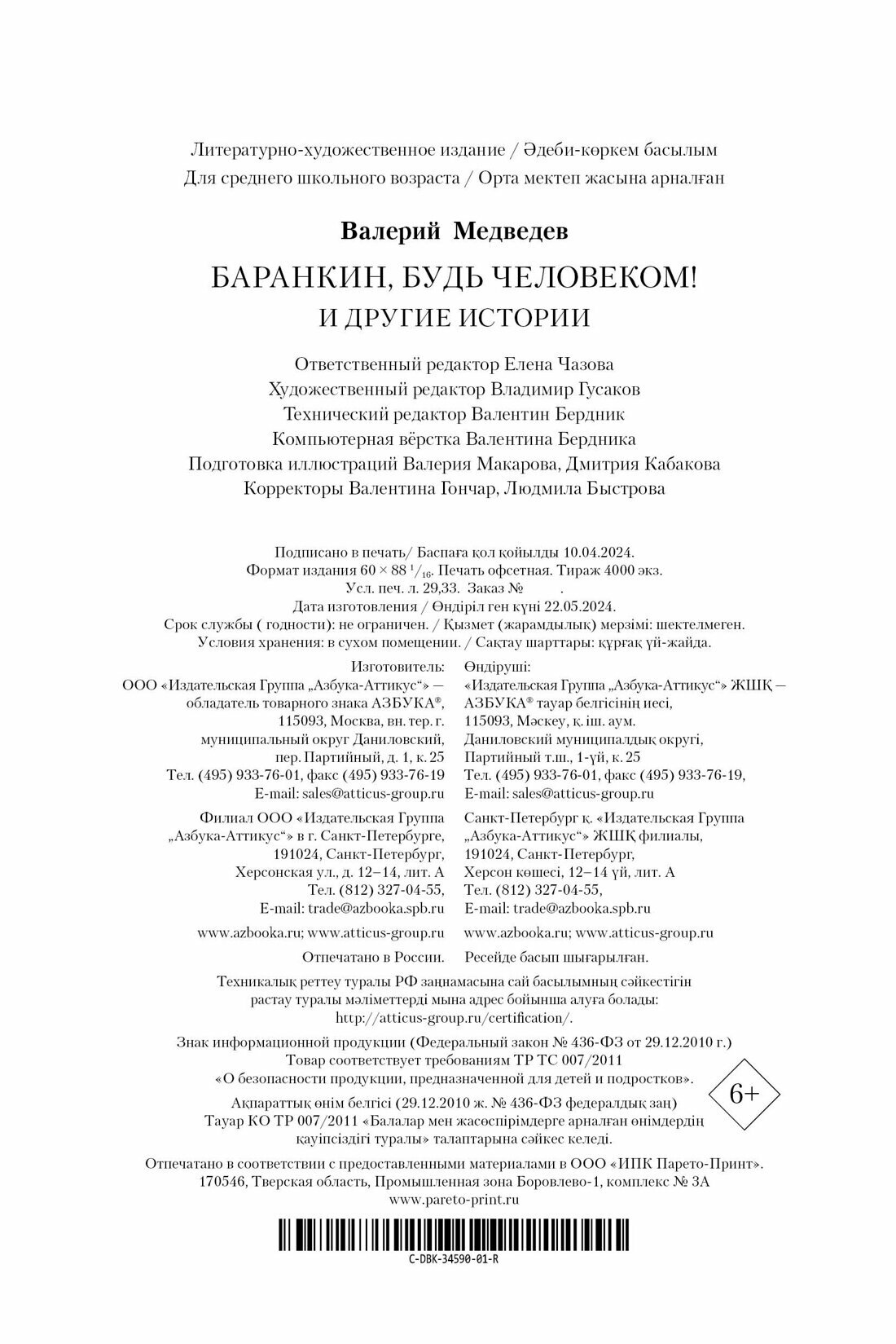 «Баранкин будь человеком!» и другие истории (Валерий Владимирович Медведев); Азбука, 2024