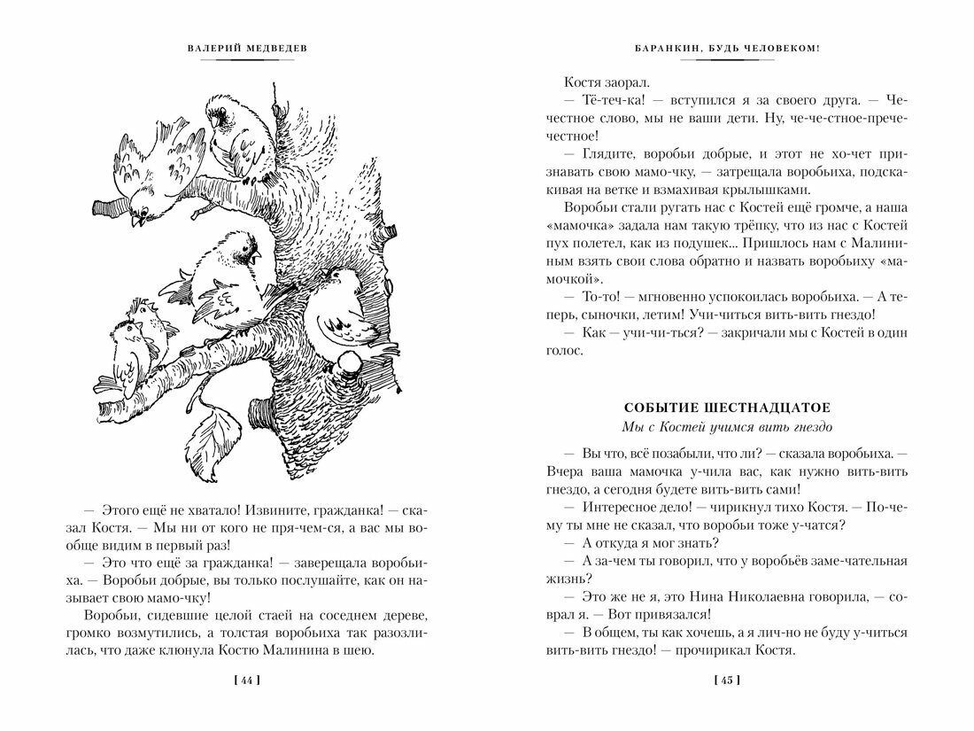 Нелегка жизнь Юрки Баранкина! От окружающих он только и слышит: «Баранкин, будь человеком!» Но что, если Юрка устал им быть? Схлопочешь всего одну двойку по геометрии, и приходится учиться в свой единственный выходной, да ещё и в школьном саду работать. Жуткая несправедливость. Вот бы стать воробьём или бабочкой и жить себе, не зная забот! Но Юрка и представить не мог, что это его желание неожиданно сбудется… Диме Колчанову в воображении тоже не откажешь, недаром друзья прозвали его Капитан Соври-голова. То он клад ищет, то змей дрессирует, а то и вовсе совершает научное закрытие. Правда, собственные выдумки порой выходят ему боком, но таков уж Капитан — ни дня без приключений прожить не может! Любимые многими поколениями читателей произведения Валерия Медведева, включённые в настоящий сборник, дополнены чудесными иллюстрациями Генриха Валька и Арнольда Тамбовкина — художников, мастерству которых история давно поставила высший балл.