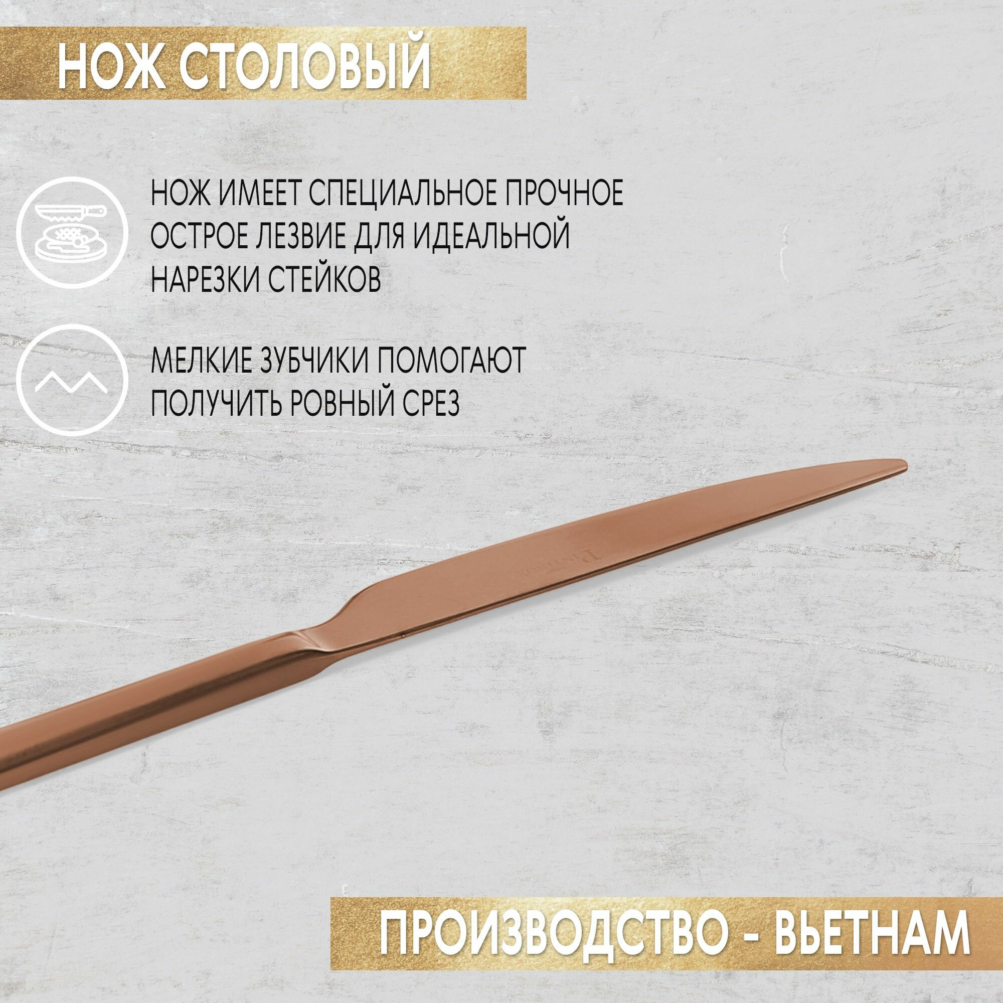 Набор столовых приборов из нержавеющей стали — это идеальное сочетание функциональности и изысканного дизайна, которое превратит ваш стол в арену искусства гостеприимства. Нежный блеск металла и его прочность создают идеальную гармонию между стилем и практичностью, что делает набор идеальным выбором для любителей гостеприимства и экспертов в кулинарии в равной мере. Столовые приборы предназначены для сервировки стола на 6 персон, благодаря чему набор прекрасно подойдет как для семейных обедов, так и для торжественных приёмов. Каждый предмет из набора изготовлен из высококачественной нержавеющей стали, что гарантирует его долговечность и устойчивость к коррозии. А легкость и изящество металла сделают ваш стол наиболее привлекательным. Кроме того, приборы можно мыть в посудомоечной машине.