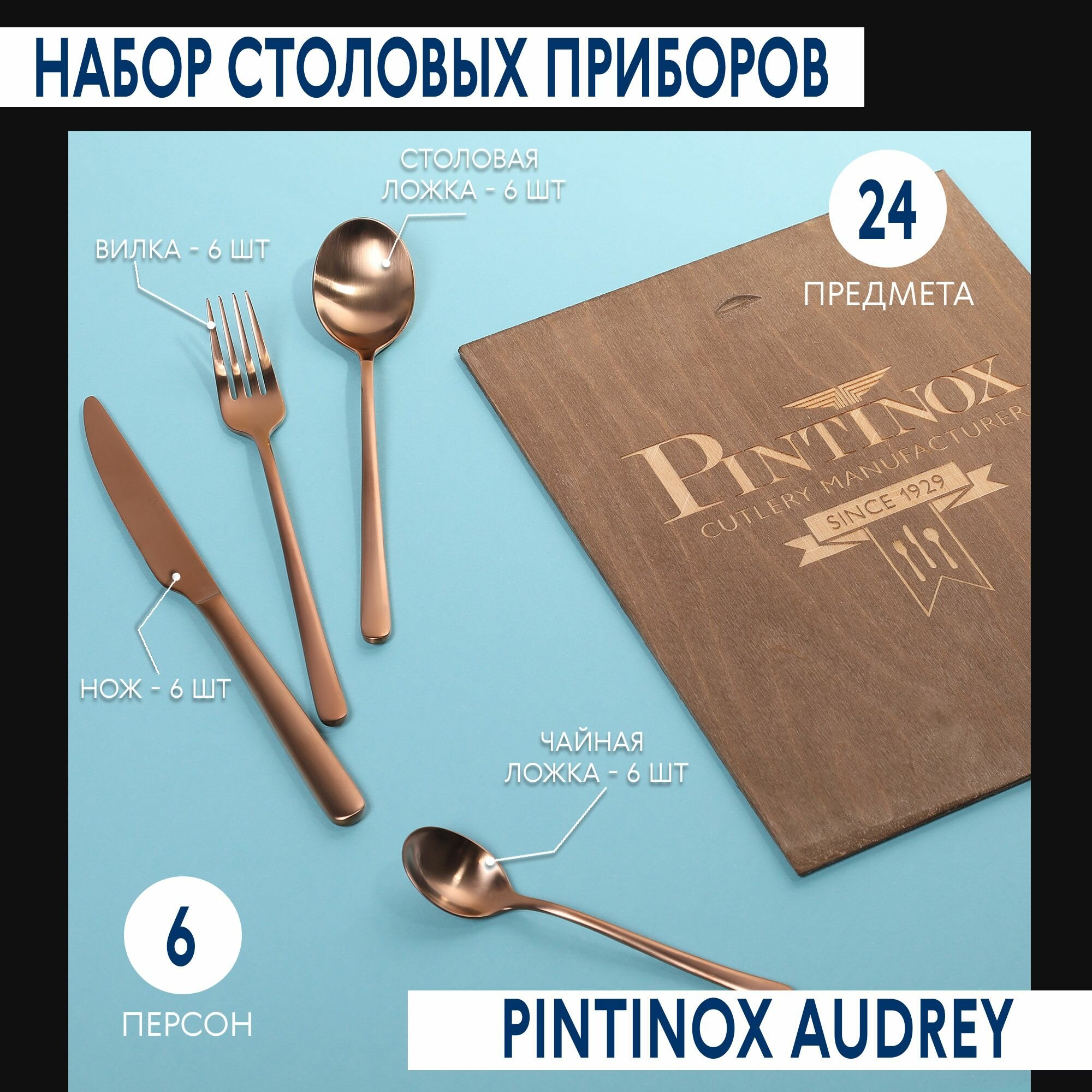 Набор столовых приборов Pintinox Satin cop 24 предмета 6 персон