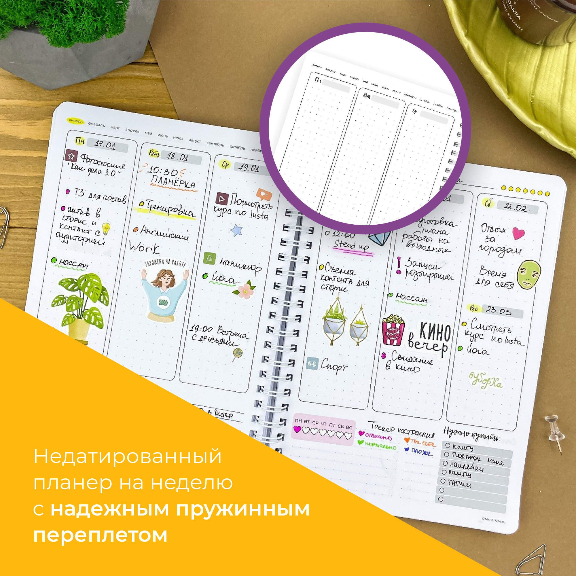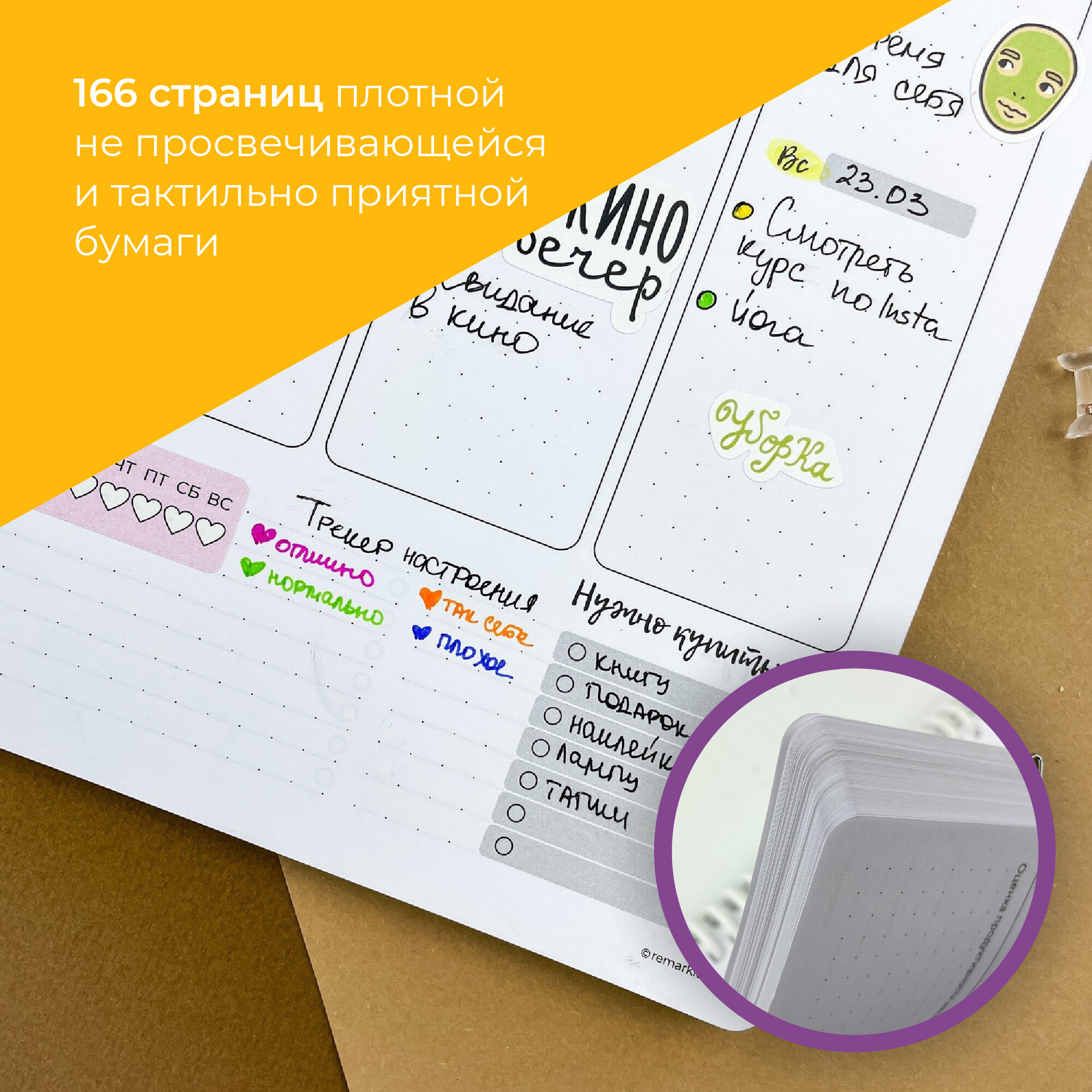 - 166 страниц плотной и тактильно приятной бумаги на целый год продуктивного планирования