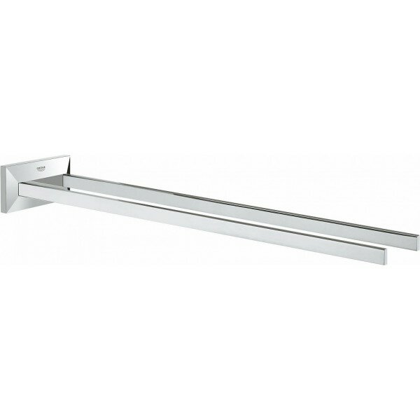Бренд Grohe в своей продукции использует идеальное, сочетание материалов (латунь) высокого качества, с полным отсутствием вредных для здоровья веществ. Хром, основной цвет исполнения Grohe Allure Brilliant, безупречно впишется в любой дизайн проект. Ключевые габариты изделия: ширина 10 см, глубина 43.1 см, высота 5 см. Прямоугольная форма прослеживается во всех линиях и придает аксессуару неповторимый стиль. Полотенцедержатель размещается в наиболее удобном положении на стене благодаря подвесному способу установки.