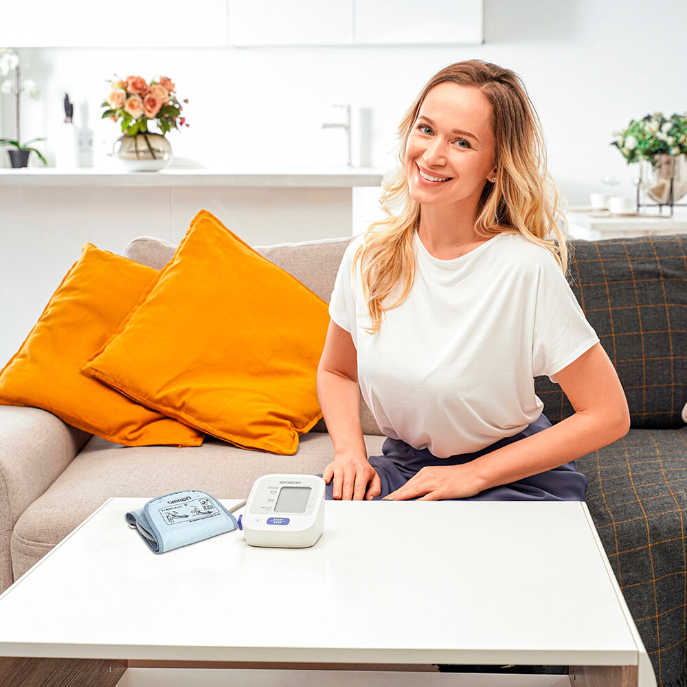 Omron - автоматический тонометр с креплением манжеты на плече пользователя. В комплекте поставляется стандартная манжета для плеча окружностью от 22 до 32 см, к тонометру также подходит малая (детская) манжета.