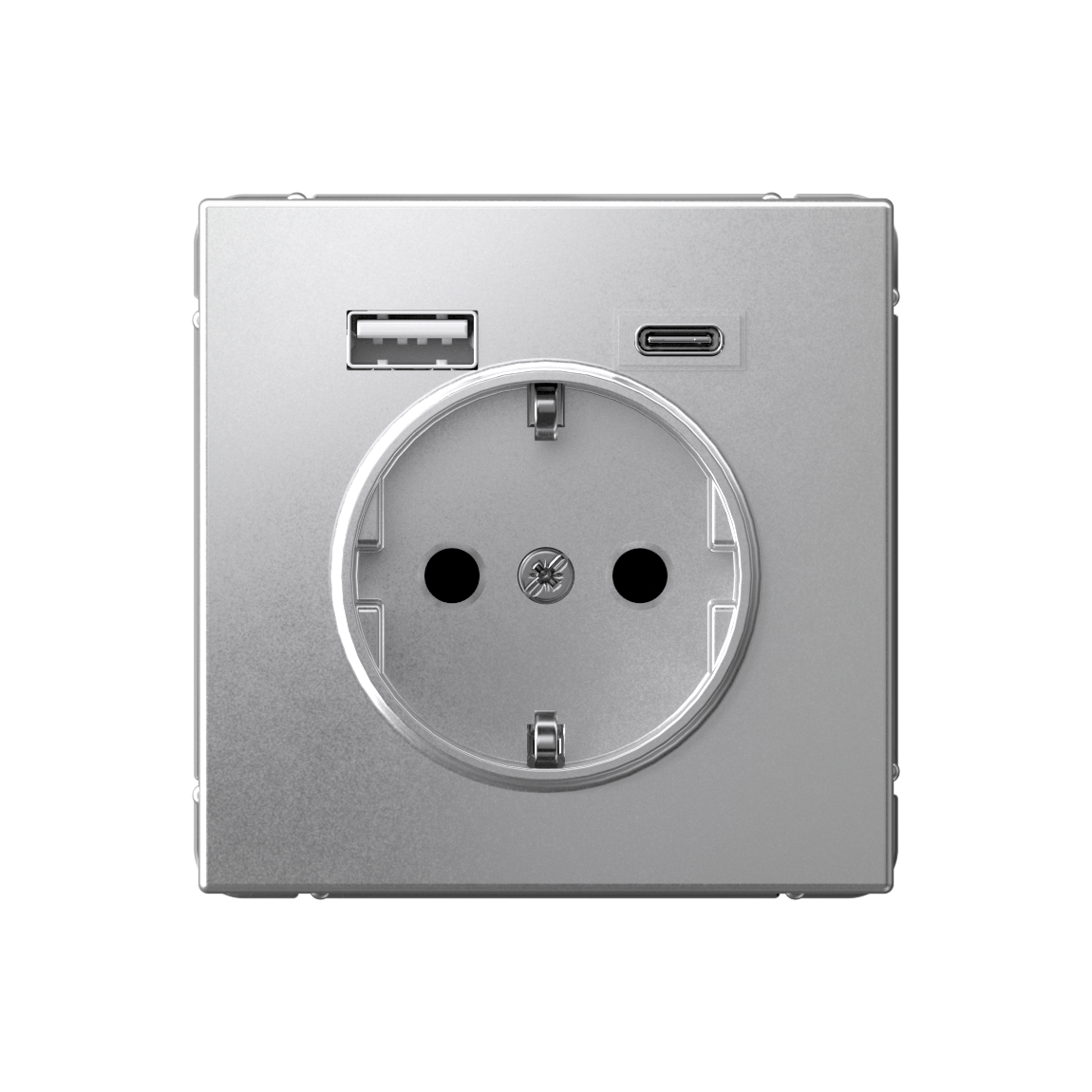 Розетка 16А с 2 USB A+C Systeme Electric (Schneider Electric) ArtGallery алюминий GAL000332