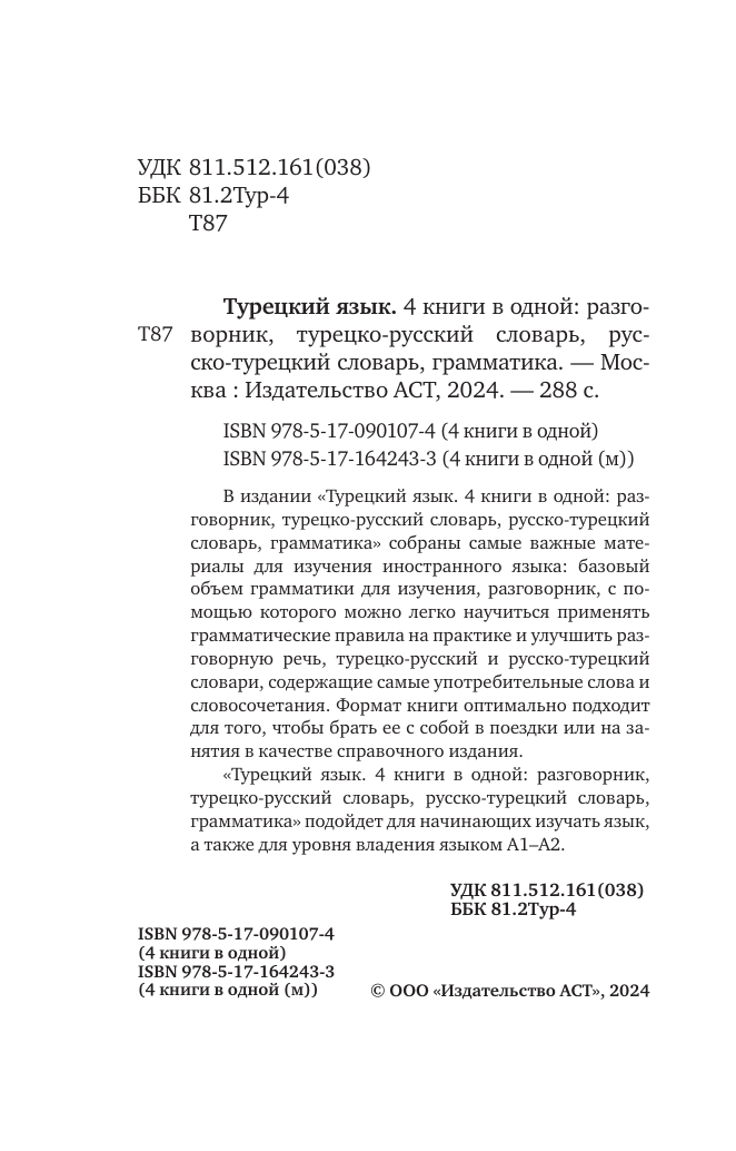 Турецкий язык. 4 книги в одной. Разговорник турецко-русский словарь русско-турецкий словарь грамматика (Лукашевич Даль Петровна); АСТ, 2024