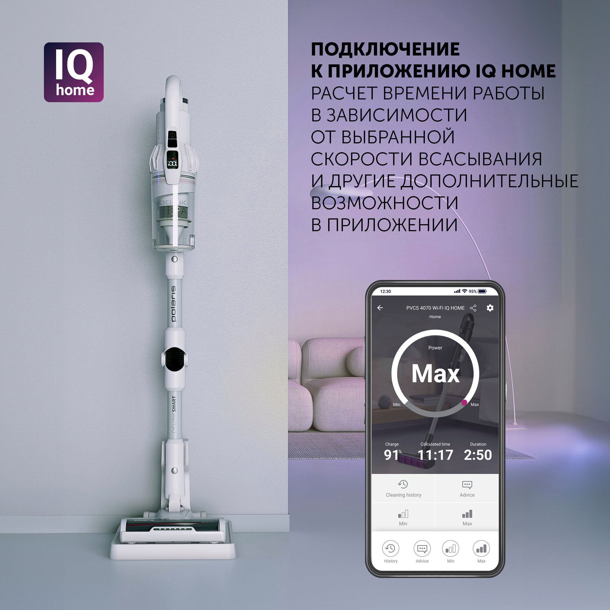 Беспроводной пылесос Polaris PVCS 4070 Wi-Fi IQ HOME