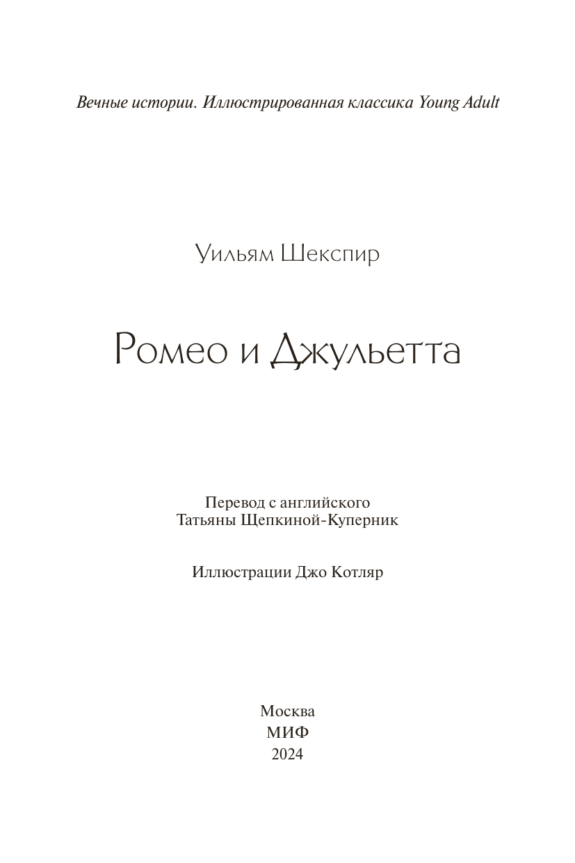 Ромео и Джульетта (с иллюстрациями Джо Котляр) (Уильям Шекспир, Джо Котляр, Татьяна Щепкина-Куперник, переводчик); МИФ, 2024