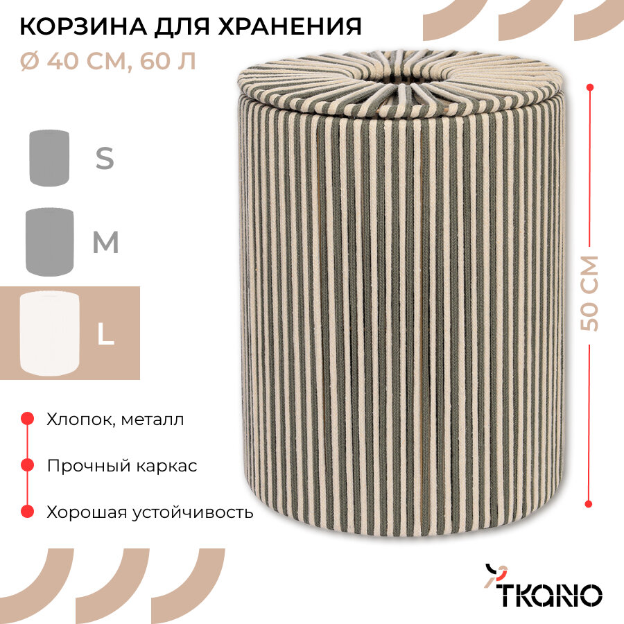 Корзина плетеная Tkano Ethnic Dholak Grey размер L (TK24-ST_BA0037)