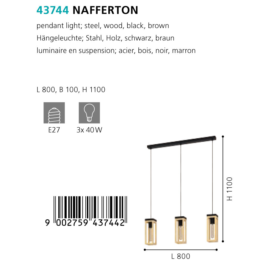 Бренд Eglo оснастил эту модель лампами с цоколем E27 и максимальной мощностью 75 Ватт.