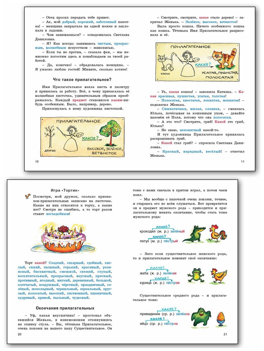 Эта книга поможет легко и радостно выучить всё, что связано с прилагательным. Путешествуя по волшебной стране Речь, герои книги в занимательной форме изучают качественные, относительные и притяжательные прилагательные, степени сравнения прилагательных, узнают, что такое согласование, перенос значения, переход одной части речи в другую, а также учатся творчески мыслить и развивают фантазию._x000D_ _x000D_Издание адресовано учащимся 3–6 классов общеобразовательных школ, но может использоваться в работе с учащимися 1–2 классов (тогда текст читает взрослый – педагог или родитель).
