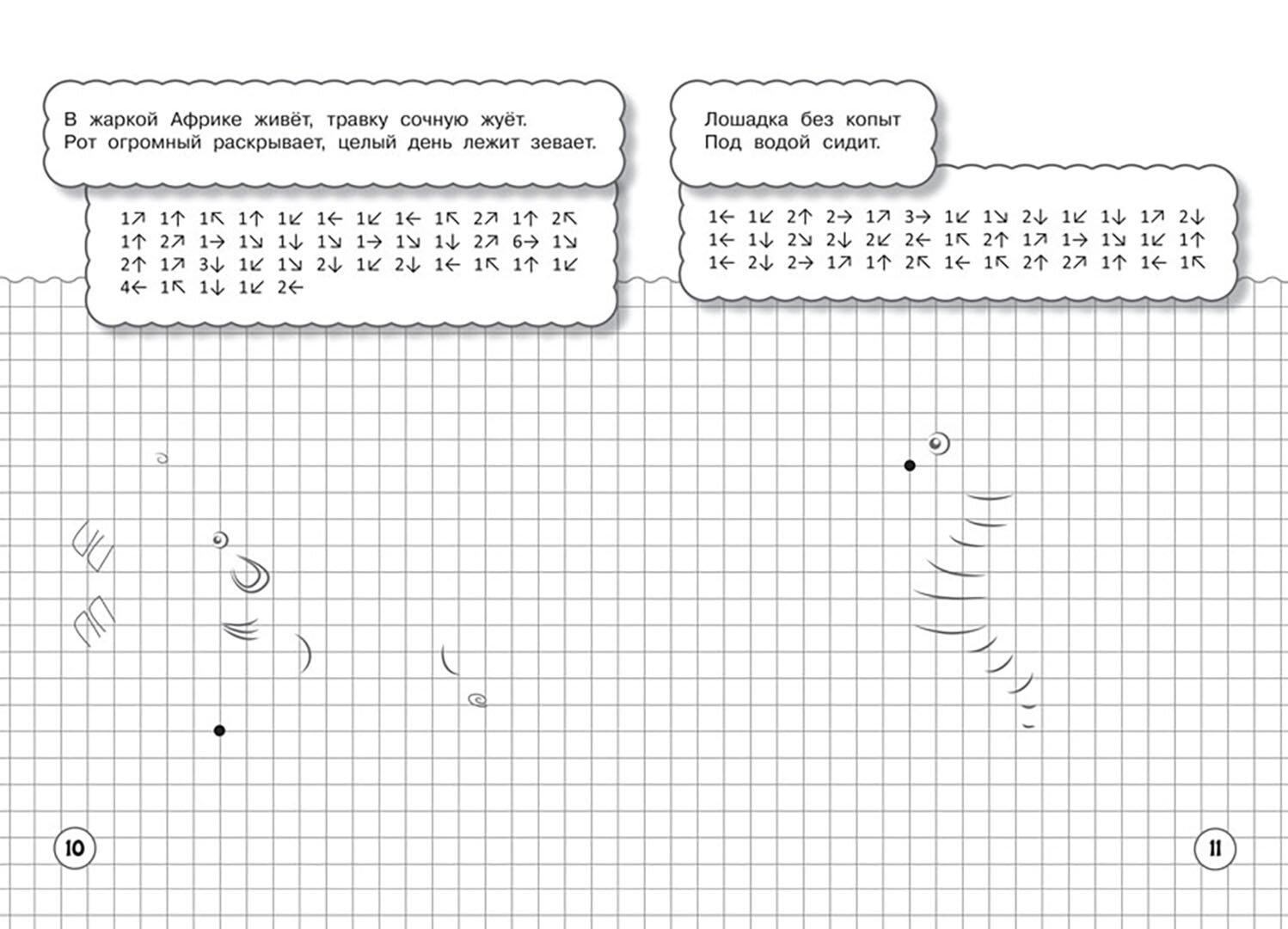 Использование методики «Графический диктант» позволит в игровой форме научить ребёнка ориентироваться на листе бумаги в клетку, отработать графические навыки, закрепить навыки счёта, понятия «вправо», «влево», «вверх», «вниз», «по диагонали», развить мелкую моторику, координацию движений, глазомер, зрительную память, внимание, пространственное мышление и воображение. Для выполнения задания необходимо последовательно проводить линии, начиная от стартовой точки. Количество отсчитываемых клеток обозначено соответствующим числом, а направление?–?стрелками. В конце приведены образцы готовых картинок.Издание предназначено для работы с детьми 5–7 лет.