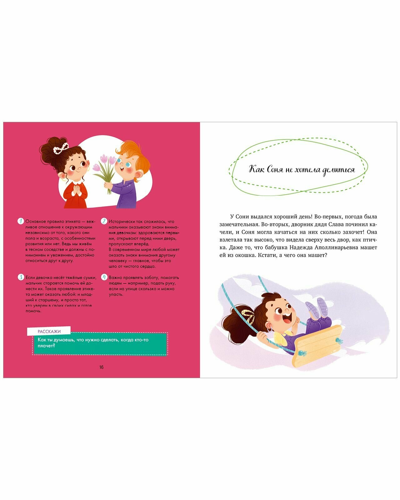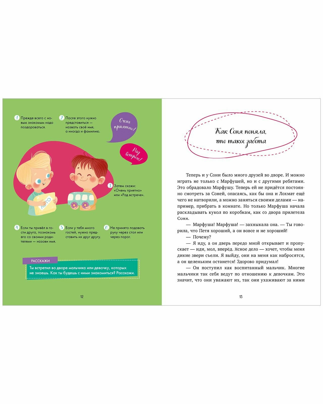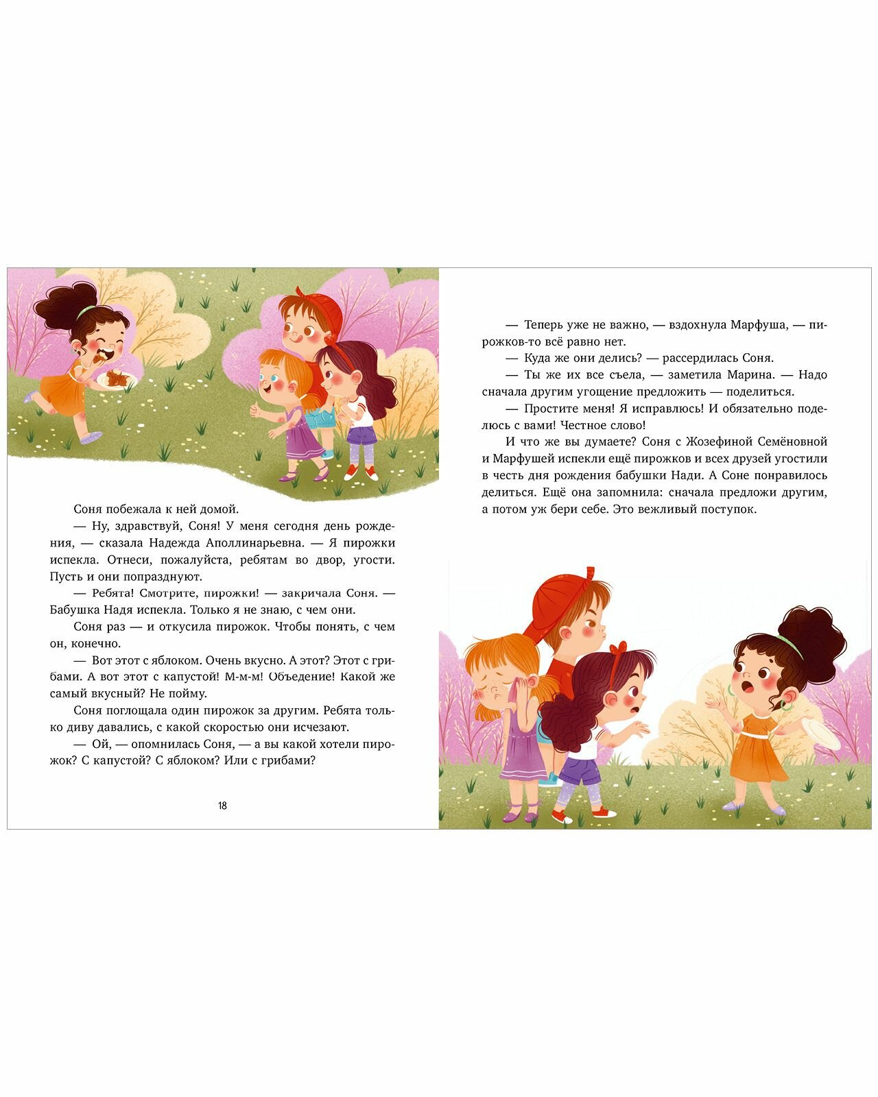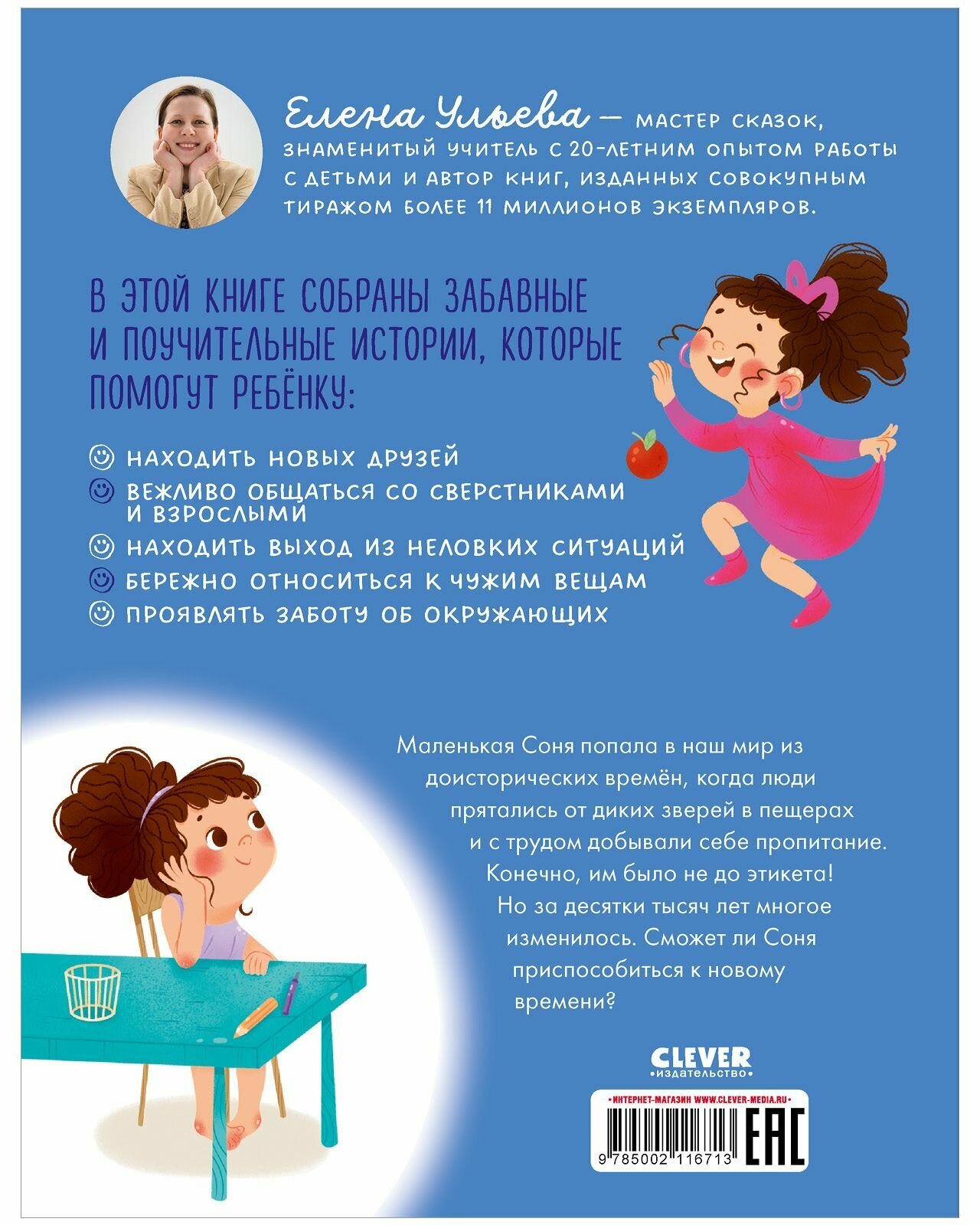 В этой книге собраны забавные и поучительные истории, которые помогут ребенку: находить новых друзей; вежливо общаться со сверстниками и взрослыми; находить выход из неловких ситуаций; бережно относиться к чужим вещам; проявлять забору об окружающих. Маленькая Соня попала в наш мир из доисторических времён, когда люди прятались от диких зверей в пещерах и с трудом добывали себе пропитание. Конечно, им было не до этикета! Но за десятки тысяч лет многое изменилось. Сможет ли Соня приспособиться к новому времени?