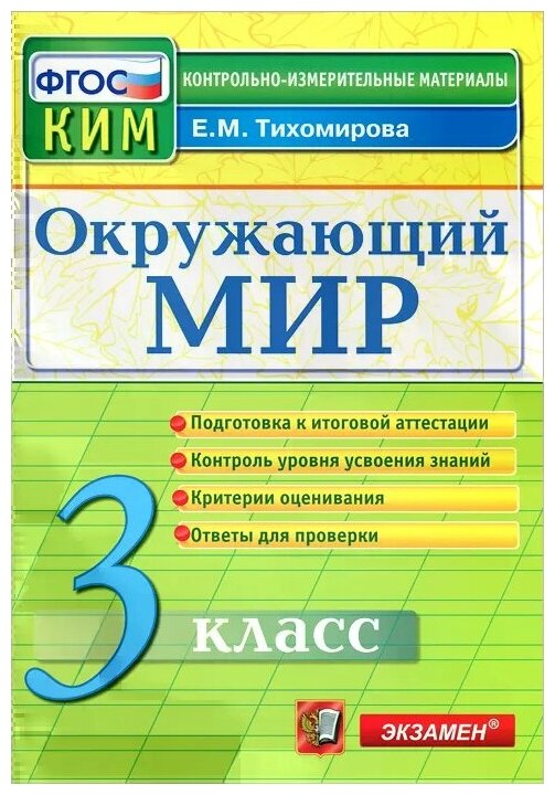 Окружающий мир. 3 класс. Подготовка к итоговой аттестации. Контроль уровня усвоения знаний. Критерии оценок. Ответы для проверки (Елена Михайловна Тихомирова); Экзамен, 2020