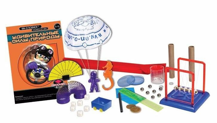 | Состав набора | 1 х Фигурка парашютиста 1 х Парашют 1 х Набор веревок 1 х Линейка 2 х Монеты 1 х Тележка 1 х Набор пластмассовых деталей трека 1 х Транспортир 1 х Пластмассовый стаканчик 13 х Металлических шариков 6 х Игральных кубиков 2 х Картонные трубки 1 х Чашка Петри 1 х Пластмассовый стержень 1 х Фигурка морского конька 1 х Пружина 1 х Капроновая нить 1 х Набор колец для шариков 1 х Пластмассовая подставка 1 х Набор пластмассовых держателей 10 х Креплений 1 х Подробная инструкция |