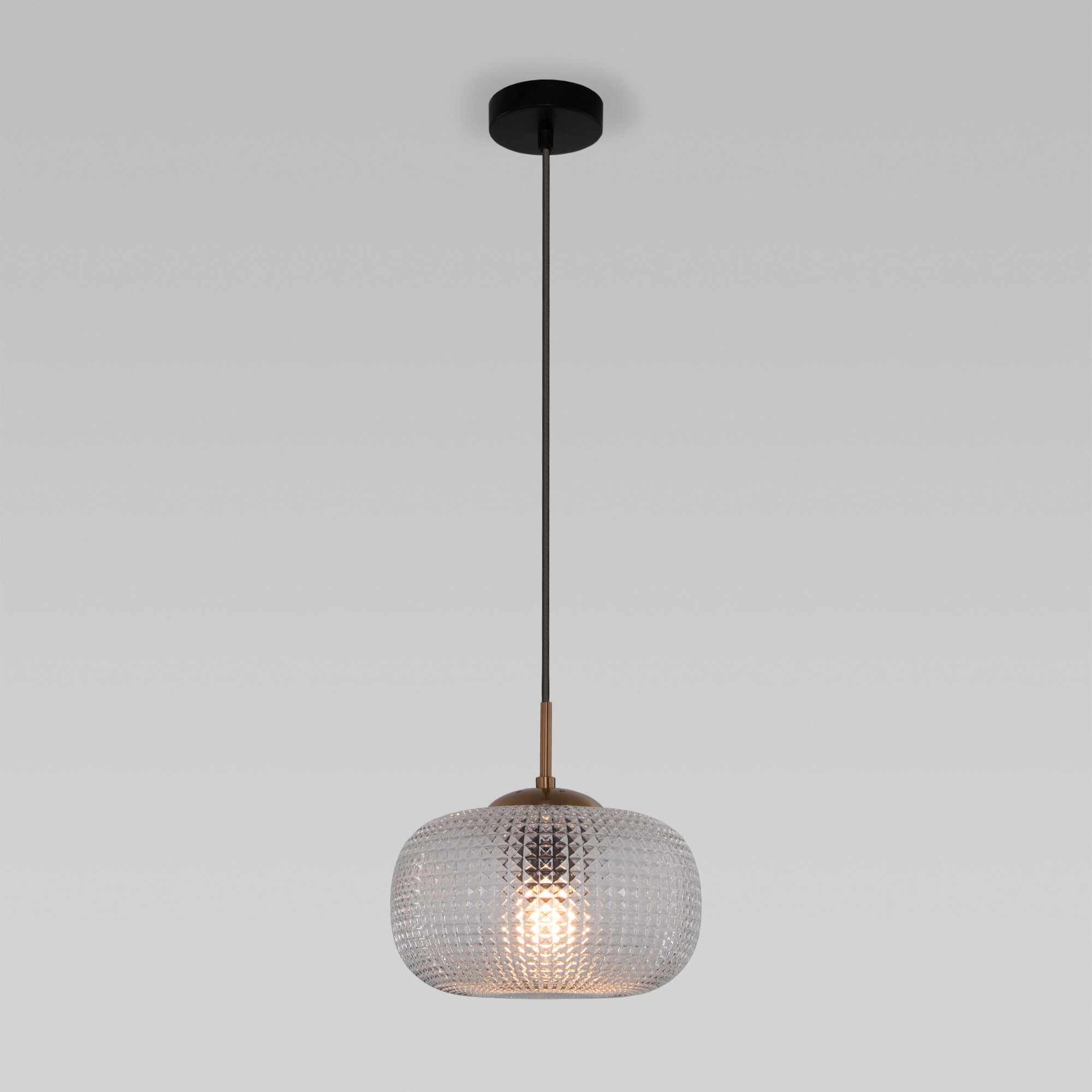 Подвесной светильник Eurosvet Gem 50263/1 черного цвета с темно-серым плафоном из фактурного стекла предназначен для создания дополнительного освещения и акцентной подсветки в современных интерьерах. Светильник со сменными лампами E27 создаст качественное освещение на площади 2 м кв. и подсветит рабочие зоны на кухне, в гостиной, в кабинете и в других местах. Светильник со стеклянным плафоном в сером цвете оборудован системой регулировки высоты подвеса, позволяющей размещать изделие на разных уровнях, уменьшая или увеличивая угол рассеивания светового потока. Подвесной светильник легко устанавливается на любых потолках при помощи монтажной планки.